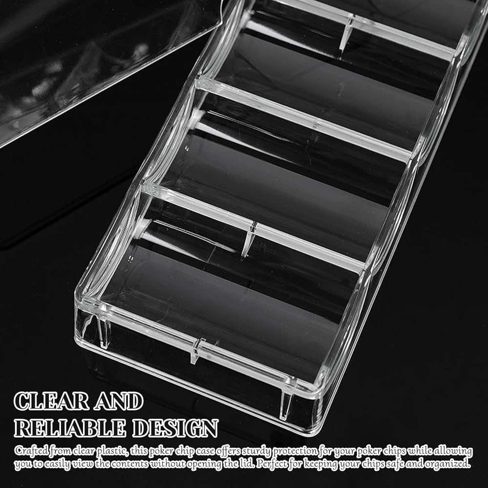 • Clear and Reliable Design: Crafted from clear plastic, this poker chip case sturdy protection for your poker chips while allowing you to easily view the contents without opening the lid. Perfect for keeping your chips safe and organized.
