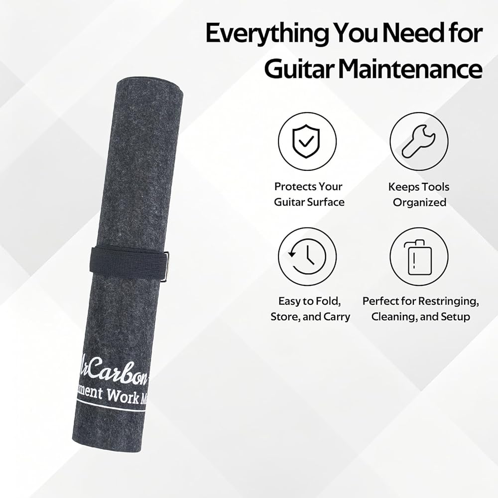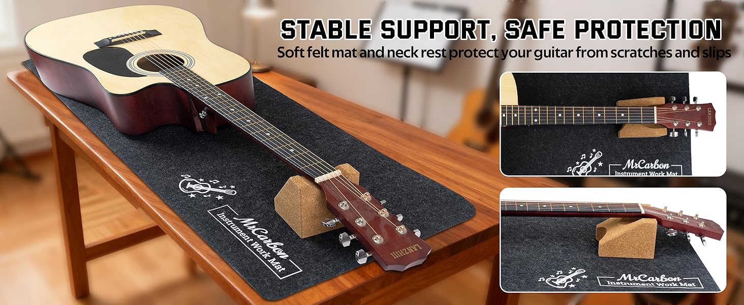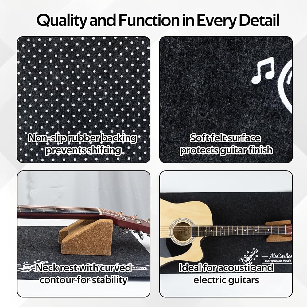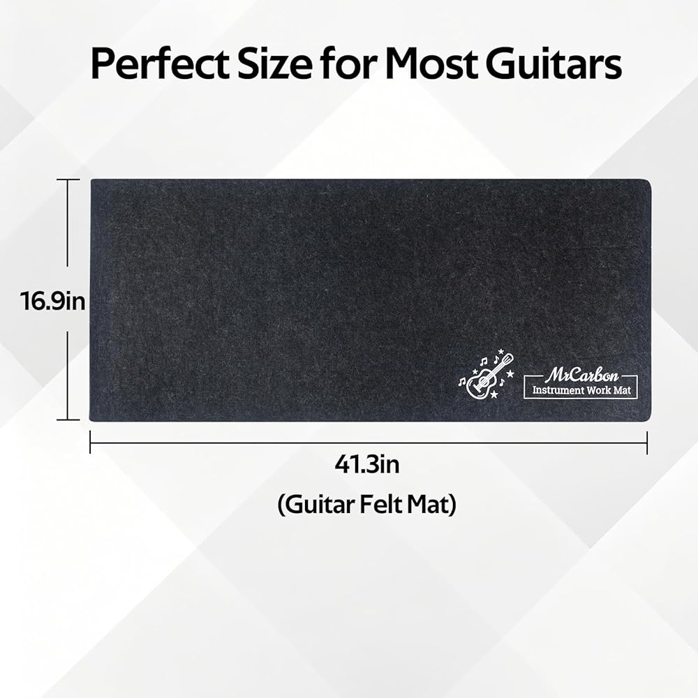 【سجادة لباد واقية لأعمال الإصلاح الآمنة】يحمي سطح اللباد الناعم تشطيبات الجيتار من الخدوش والانبعاجات، بينما يحافظ الجزء الخلفي غير القابل للانزلاق على ثبات السجادة في مكانها أثناء الصيانة. حجم كبير يناسب الجيتارات الصوتية والجيتارات الكهربائية والباس