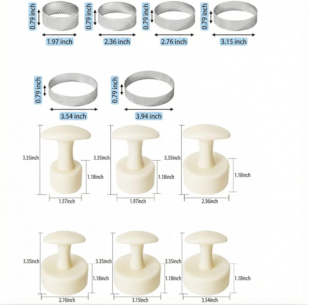 • مجموعة متعددة الاستخدامات للحلويات الإبداعية: تشتمل المجموعة على أحجام مختلفة من حلقات المعجنات تتراوح من 2.0 إلى 3.9 بوصة (تحديدًا 2.0 بوصة و2.4 بوصة و2.8 بوصة و3.1 بوصة و3.5 بوصة و3.9 بوصة) لتناسب جميع احتياجاتك في الطهي. تعتبر أدوات قوالب التارت متعددة الاستخدامات هذه مثالية لصنع الكعك الصغير والموس والحلويات الاحترافية في أي منزل أو مطبخ DIY