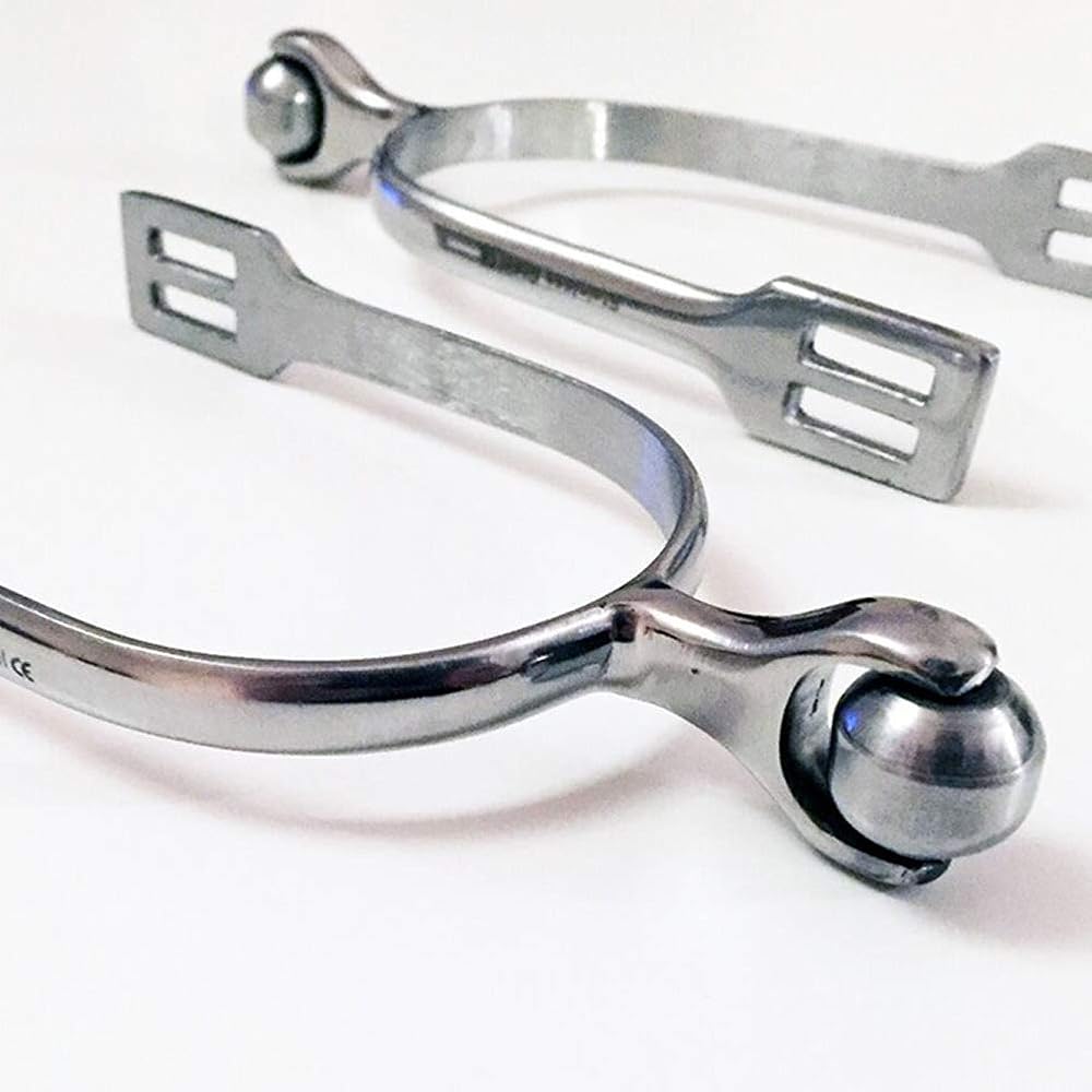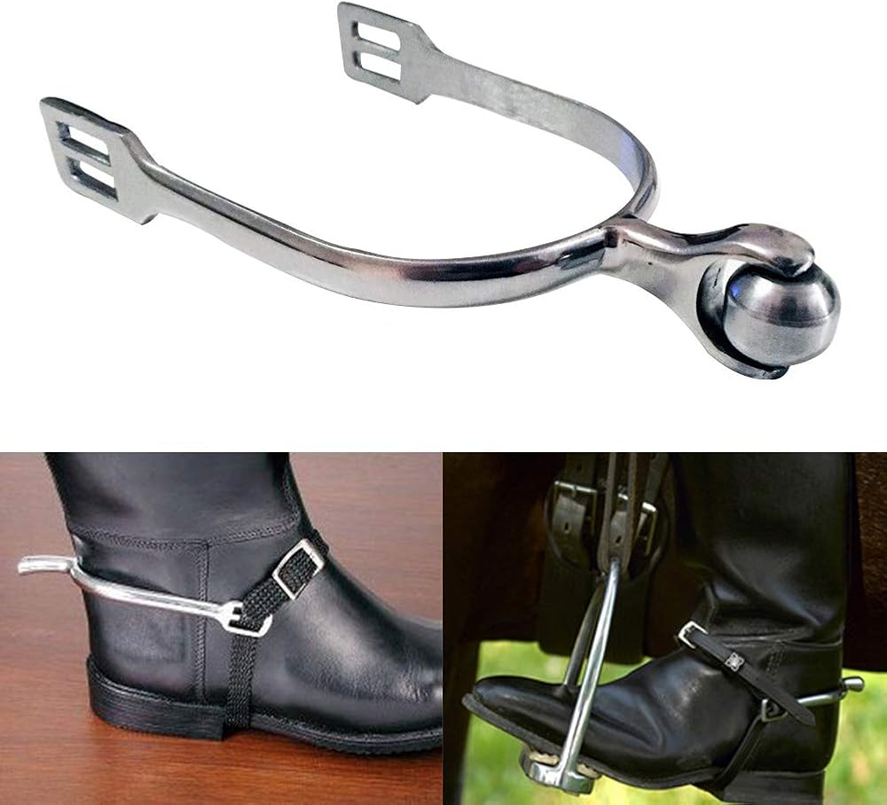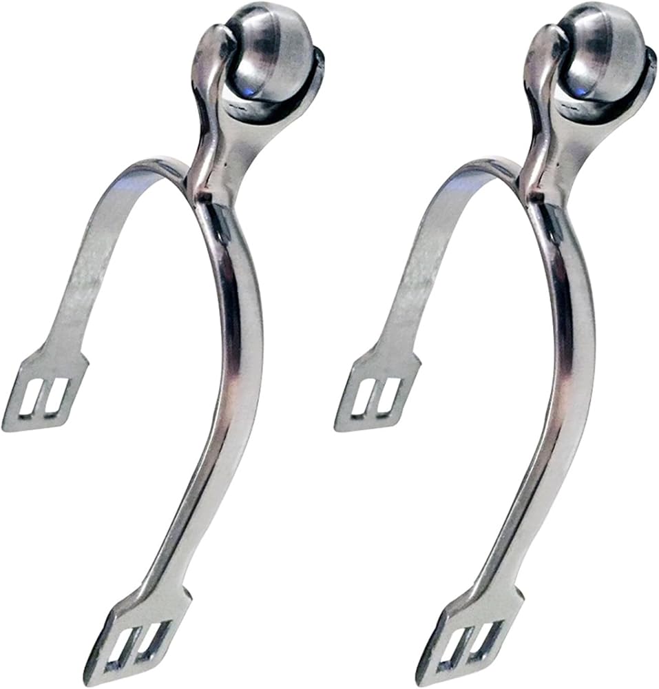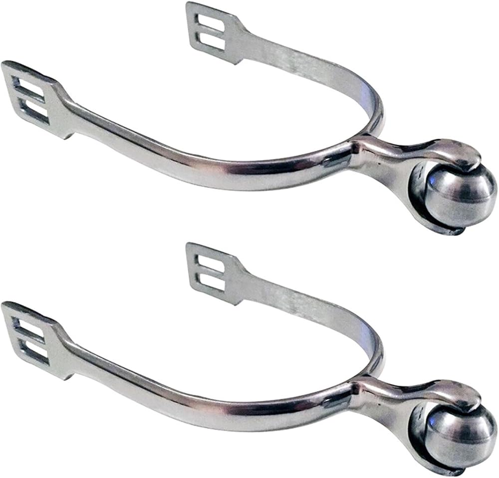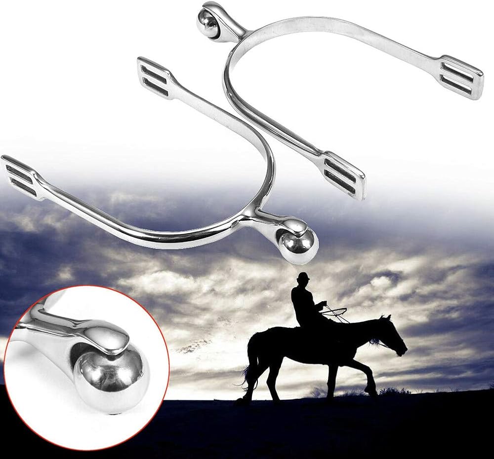 1 pair stainless steel horse spurs and durable. The head with small rotating ball.