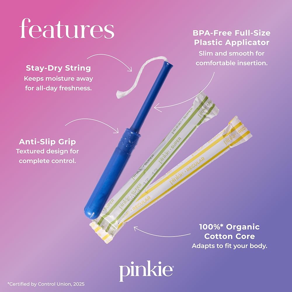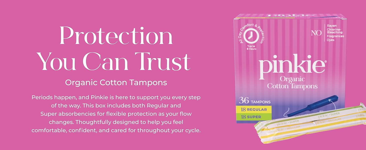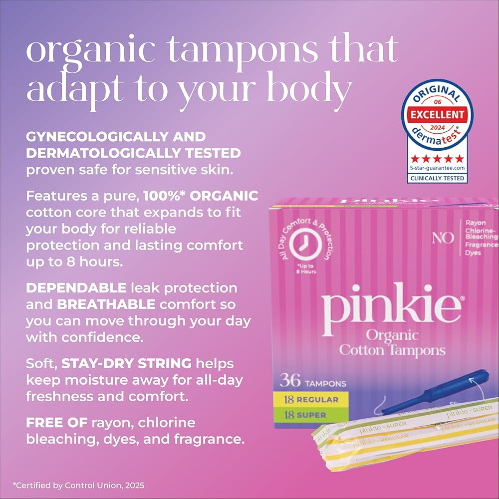 امتصاص طوال اليوم، بشكل طبيعي: تتميز سدادات بينكي بحشوة من القطن العضوي بنسبة 100% تتمدد لتناسب جسمك وتساعد على الحماية من التسربات لمدة تصل إلى 8 ساعات. مريحة وموثوقة للمراهقين والبالغين على حد سواء