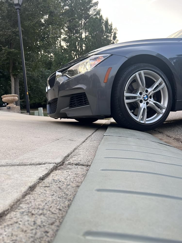 Durable Rubber Material with NEW GRAY COLOR to blend in with cement and or concrete: Our curb ramps for sidewalks and driveway entrances are made of recycled rubber material, making them able to withstand years of wear and weather conditions. Specifically designed to help your vehicles get over curbs or elevated sidewalks easily.