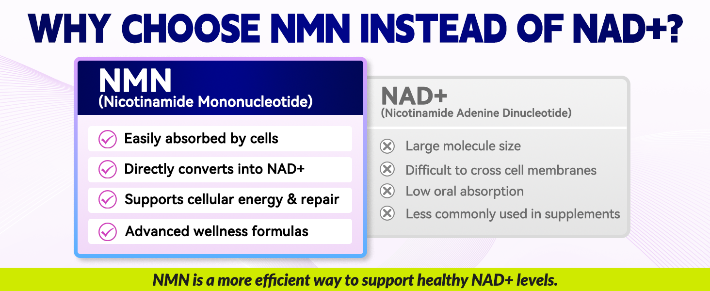 تعزيز مستويات NAD للطاقة والحيوية والشيخوخة الصحية يتناقص NAD بشكل طبيعي مع تقدم العمر، مما يؤثر على الطاقة والتمثيل الغذائي والوظيفة الخلوية. يعمل مكمل NMN عالي الجرعة هذا على تجديد مستويات NAD بكفاءة، ويدعم صحة الميتوكوندريا، وإصلاح الخلايا، وصيانة الحمض النووي، وتنشيط السيرتوين - العوامل الرئيسية للطاقة المستدامة، والوضوح العقلي، والشيخوخة الرشيقة.