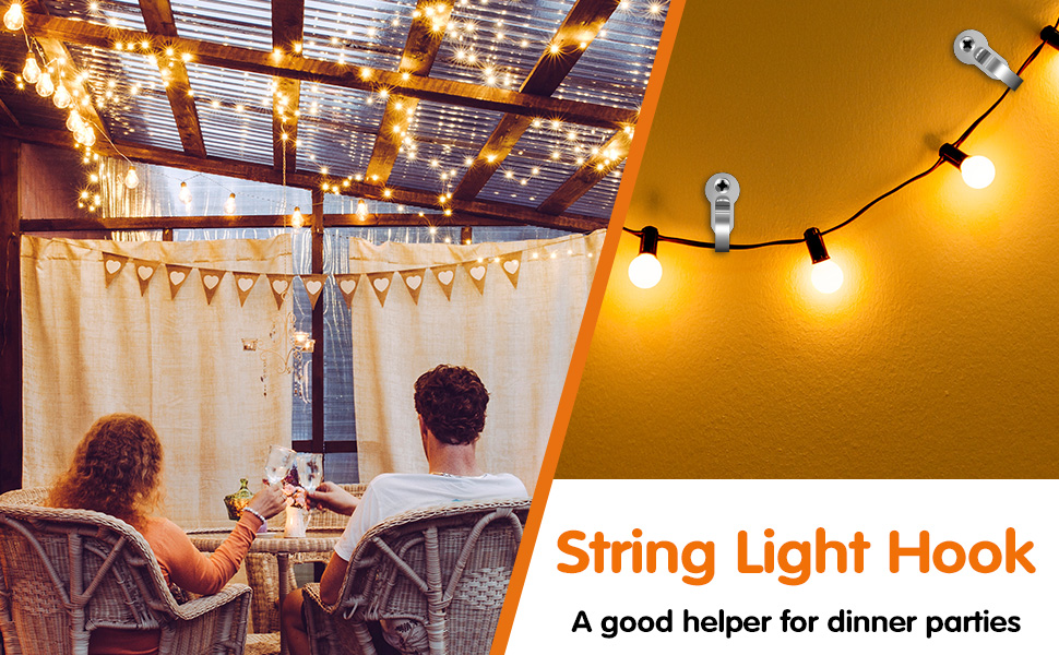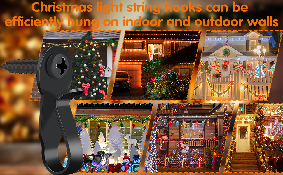 تستخدم على نطاق واسع: تُستخدم خطافات الإضاءة الخارجية على نطاق واسع لتعليق الخيوط، وأضواء الكريسماس LED، والأضواء الخيالية وإضاءة الفناء، كما أنها جيدة للتعليق على ديكورات الجدران الداخلية، مثل تعليق خيوط البالونات، وديكور جدار غرفة عرض الصور، والستائر، وسلاسل المفاتيح. يُعد خطاف عيد الميلاد الخفيف هذا طريقة رائعة لتزيين الفناء الخلفي الخاص بك.