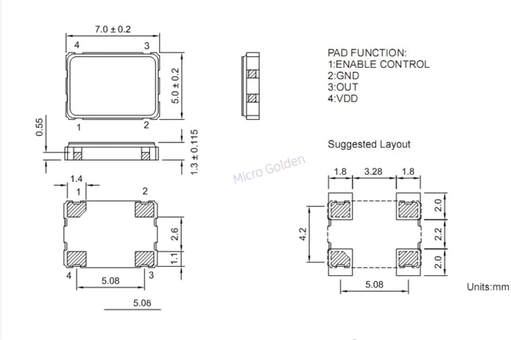 (5pcs) 52M 52MHZ 52.000MHZ 5070 7050 SMD Active Crystal Oscillator OSC 4Pin 5.0X7.0MM Clock Oscillators 3.3V/5V
