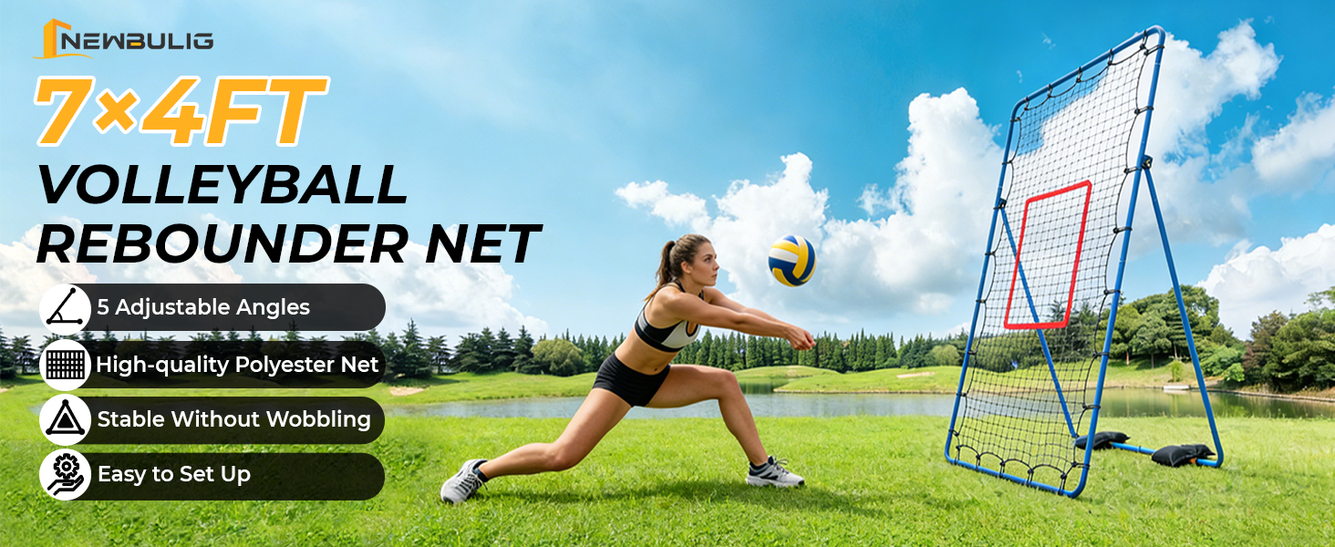 NEWBULIG الكرة الطائرة Rebounder صافي 7x4 قدم، 5 زاوية قابل للتعديل ترتد معدات التدريب، شبكة متينة لممارسة الكرة الطائرة، والصدمات، والارتفاع، وسهلة الإعداد وحقيبة سفر محمولة للتخزين in Kuwait