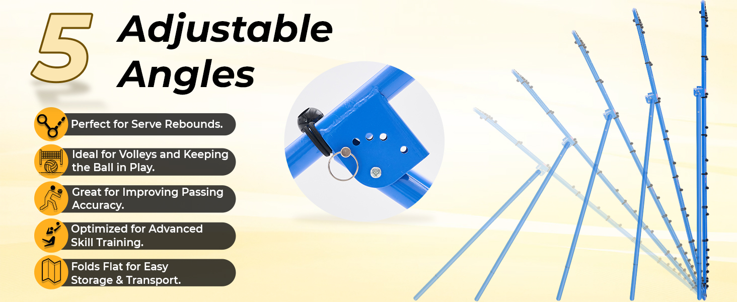 • 5 زوايا قابلة للتعديل: تتيح أداة ارتداد الكرة الطائرة من NEWBULIG إمكانية تبديل الزاوية بسهولة - ما عليك سوى إعادة وضع دبوس القفل للحصول على الإمالة المرغوبة. وهو يدعم ممارسة المهارات متعددة الزوايا، وهو فعال لجميع تدريبات الكرة الطائرة ومناسب للمبتدئين واللاعبين ذوي الخبرة.