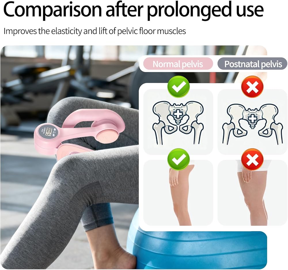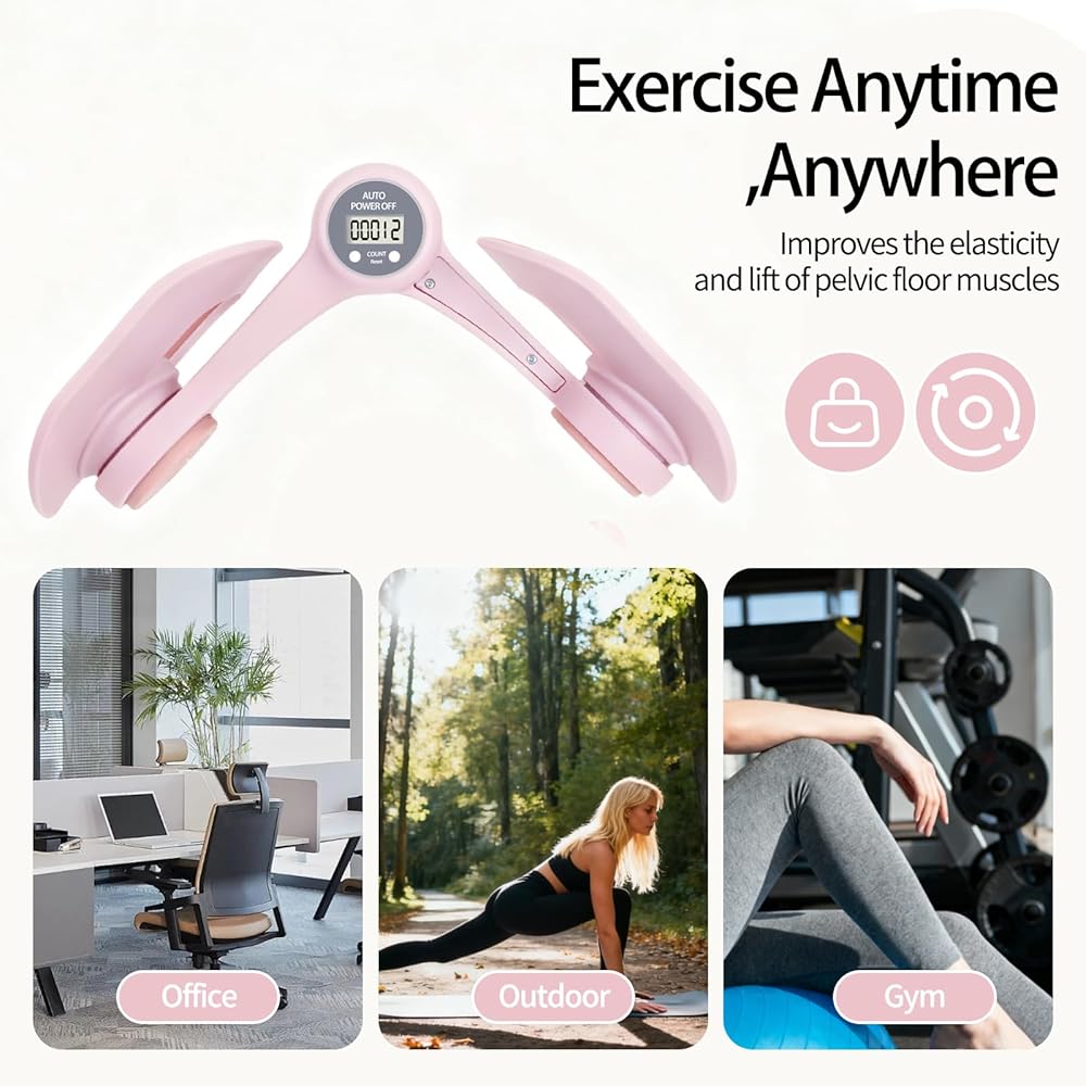 جهاز تمرين الفخذ الداخلي للنساء، أجهزة تمرين أرضية الحوض مع عداد عرض، مدرب الورك قابل للتعديل كيجل لإعادة التأهيل بعد الولادة، معدات اللياقة البدنية المنزلية للورك/الساق/المؤخرة