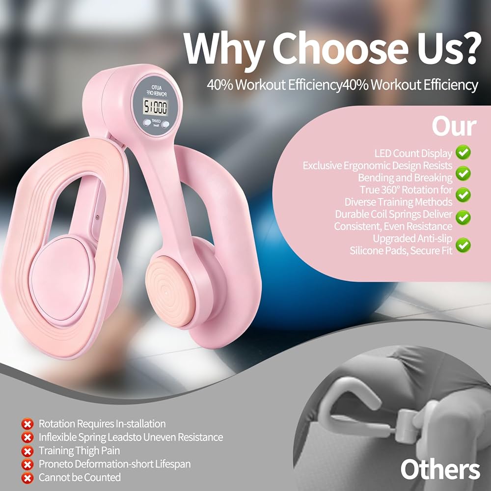 360° Rotation, Premium Materials: The pelvic floor trainer crafted from PP, TPE and high-tensile springs, it remains odour-free and resistant to ageing, maintaining its shape without deformation or breakage over extended use. The 360° rotating mechanism, paired with an enhanced curved surface, closely follows the contours of your thighs and buttocks. Whether you seek to strengthen your core or sculpt slender legs, this leg trainer delivers.