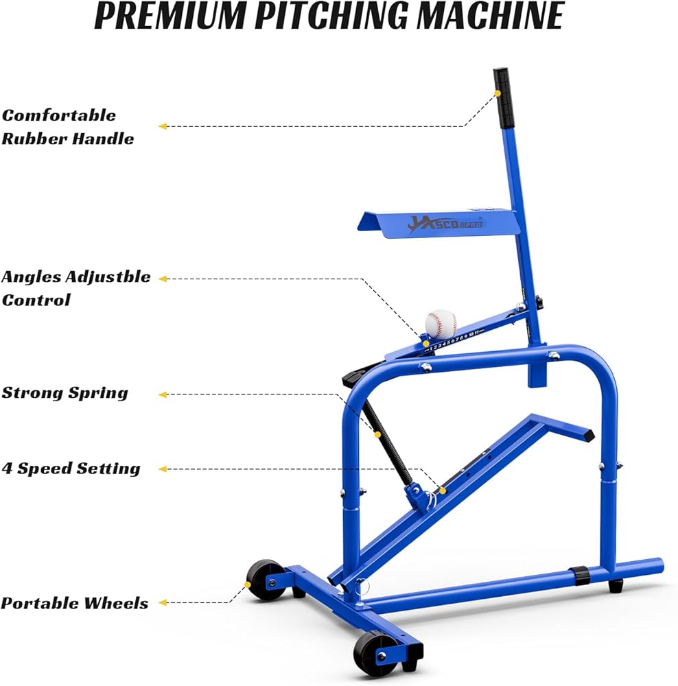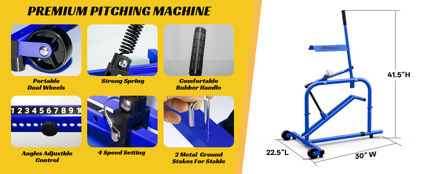 ⚾ 【بناء ثابت】تم تصميم آلة رمي الكرة اللينة هذه بإطار فولاذي ونظام زنبركي عالي التوتر، لتكرار لا نهاية له عالي الجودة. تتضمن 2 أوتاد أرضية معدنية لمزيد من الثبات والمتانة أثناء جلسات التدريب المكثفة.