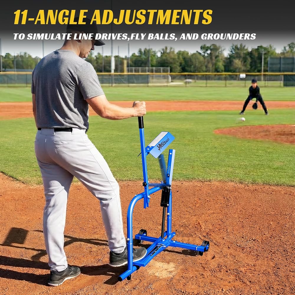 آلة رمي البيسبول بعجلات، 11 زاوية قابلة للتعديل، التحكم في سرعة 25-40 ميل في الساعة، لا تحتاج إلى كهرباء، آلة رمي الكرة اللينة، آلة رمي الإطار المعدني للتدريب على الضرب والميدان