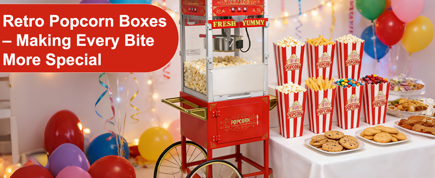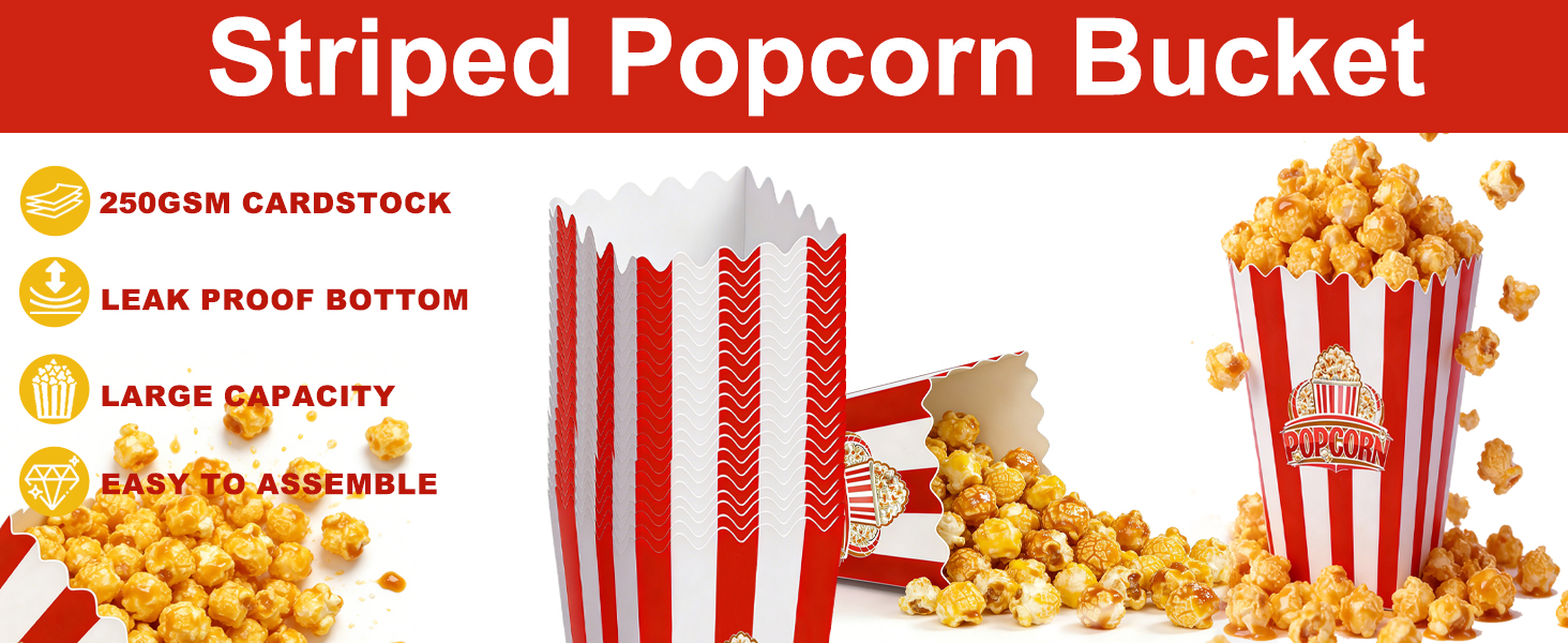 تخزين مريح للوجبات الخفيفة: صناديق الفشار خفيفة الوزن ولكنها متينة تحمل الفشار أو الحلوى أو الوجبات الخفيفة. يعمل بشكل مثالي مع صانعي الفشار أو الفشار في الميكروويف. يمكنك تقديم الوجبات الخفيفة للحفلات دون عناء.