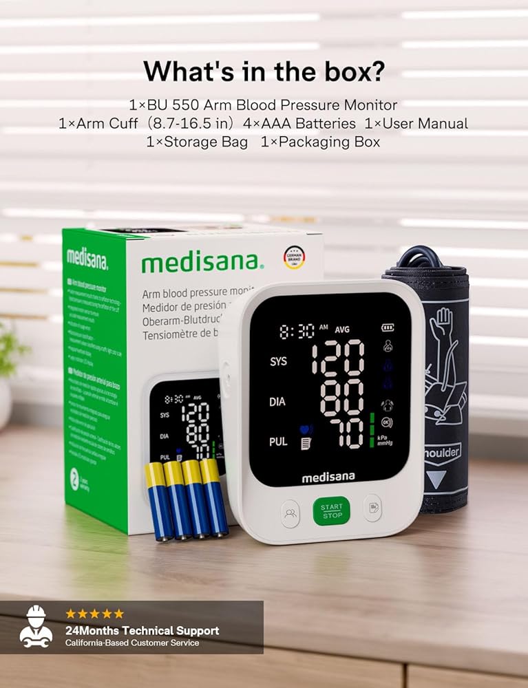 قياس الضغط الدقيق والفعال: جهاز قياس ضغط الدم Medisana للاستخدام المنزلي يحتوي على أجهزة استشعار عالية الدقة وأحدث الرقائق. يتم جمع أكثر من 100000 نقطة بيانات لاختبار الموثوقية لضمان دقة القياسات. يتم حساب ضغط الدم بشكل متزامن عندما يتم تفريغ الكفة من الهواء، ويتم إخراج النتائج في غضون عشرات الثواني. يمكن استخدام ضوء التحذير ثلاثي الألوان التابع لمنظمة الصحة العالمية للحكم بشكل بديهي على الحالة الصحية (منخفضة/طبيعية/خفيفة/عالية الخطورة)