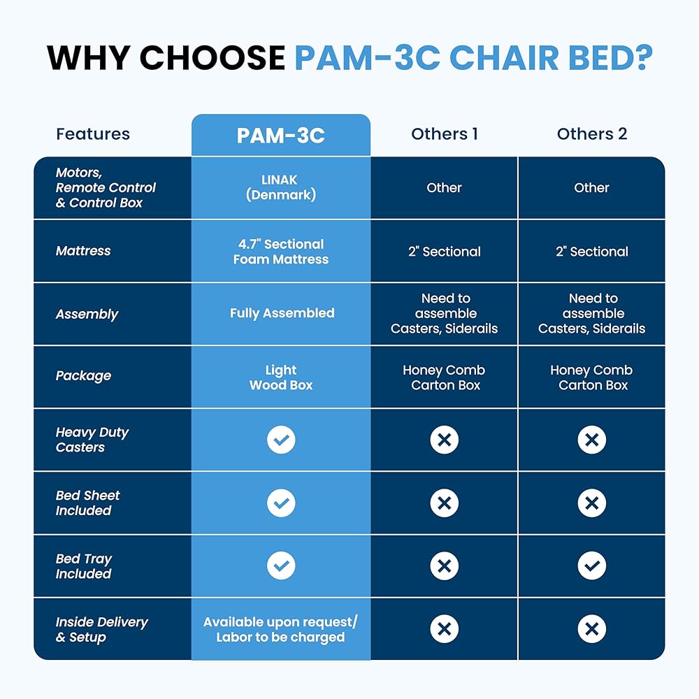 طاقة موثوقة وتحكم سلس - تحافظ البطارية الاحتياطية على تشغيل الطاقة أثناء انقطاع التيار الكهربائي، لذلك لا يتم مقاطعة تحديد الموقع. يوفر نظام المحرك حركة سلسة وهادئة، ويمكن التحكم فيها بسهولة عن طريق جهاز التحكم عن بعد بجانب السرير.