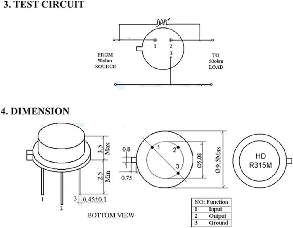 (10pcs) HDR315M 315MHZ R315M Acoustic Meter Remote Emission Crystal Oscillator TO39 R315M SAW Tripod Circular Resonator
