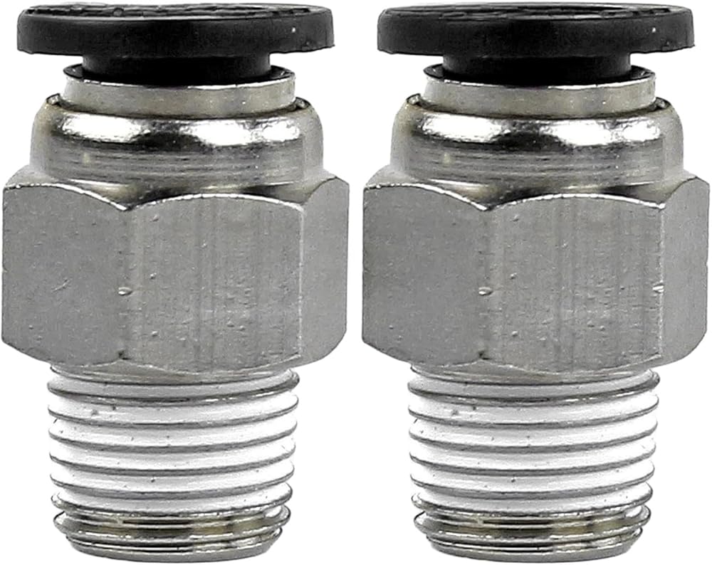 • 1/8" Male NPT x 1/4" Push Lock Straight Connector Fitting (2 Pack) 2 Brand new Prevost 1/8" male NPT x 1/4" push lock straight connector fittings. These are high quality, solid brass fittings with nickel plating to resist corrosion and ensure a long working life. The push lock fitting features a 1/8" male NPT connection and accepts 1/4" o.d. hose. These fittings make hose installation and removal extremley quick, easy, and convenient. You can use these push connect fittings in a variety of applications and it comes with a teflon sealing on the threads for a air tight seal in installation.