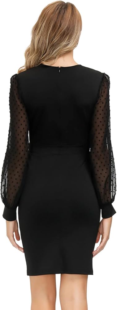 • 【فريد من نوعه】 تصميم رقبة على شكل حرف V يخلق مظهرًا مثيرًا من الأمام ومظهرًا خلفيًا رائعًا. فستان القلم الرصاص يعدل شكل الساق المثير الجميل، ويجعلك أكثر جاذبية وجاذبية. أكمام شبكية فريدة تضيف الغموض إليك.
