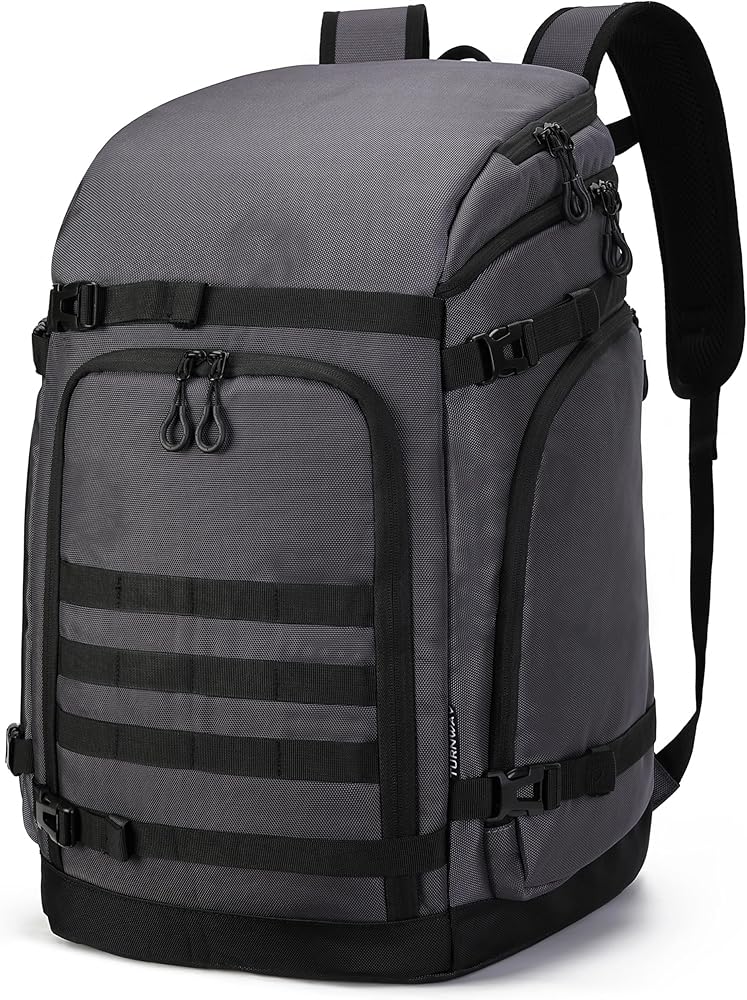 TurnWay Ski/Snowboard Boot Bag is a 50L backpack-style bag which can carry all your gear. ★TOUGH, WATER-PROOF MATERIAL TurnWay ski/snowboard boot bags/Skating bags are made of superior quality 1680D polyester. It is the popular and ideal lightweight material for ultra-strong and heavy duty bags. Double PU coated and polyester material are water-proof, stretching resistant, wear-resistant, durable for any weather conditions. The boot bag offers reliable, long-lasting strength. ★FUNCTIONAL ZONE & SPACIOUS DESIGN Three large main compartments can hold ski boots, helmet and clothing. Two sided pockets and front pocket are for other ski accessories. Lots pockets keep your items well organized. ★DURABLE, REINFORCED DESIGN Sided straps can hold skis with the other gear. Reflective Strip improve your safety during the night. ★COMFORT FEATURES This bag includes Massage Air Padded shoulder straps, SBS zipper and ergonomic carrying top and front handles. Convenient to lift and move. SPECIFICATIONS Dimensions: 33 x 33 x 48cm (LxWxH) 12.99 x 12.99 x 18.9inch Weight: 1.2kg / 2.6Ibs Color: Black, Grey, Black-orange, Grey-orange and Blue Material: High quality, durable and Water-proof 1680D polyester, double PU coated and anti-slip PVC SBS Zippers and ergonomic carrying top and front handles