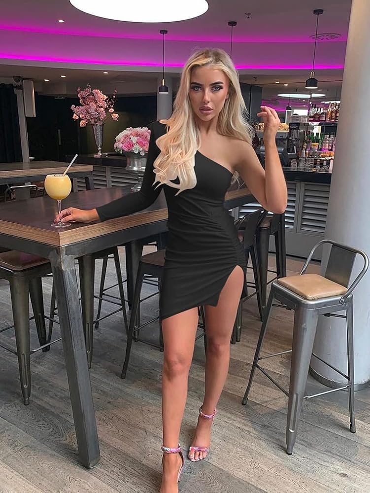 • المزايا: كتف واحد، طراز كاجوال، مكشكش، منقسم، أكمام طويلة، خصر عالٍ، يحتضن منحنياتك بشكل مثالي وجذاب.