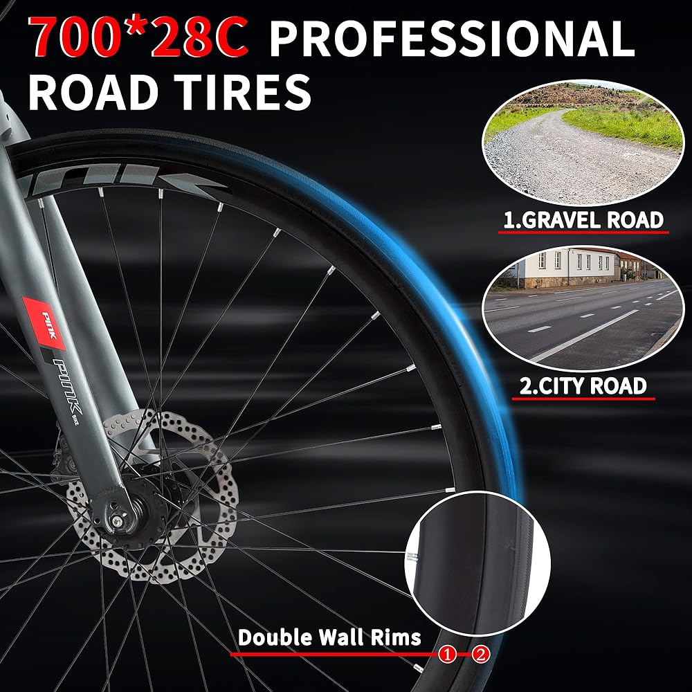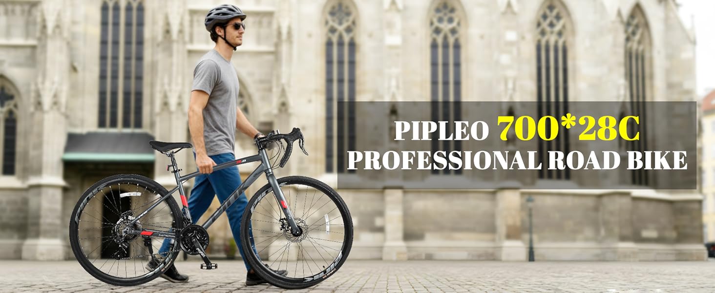 Pipleo Road Bike، دراجة ركاب المدينة 700C، 21 سرعة دراجة سباق شيمانو الرياضية، إطار من الألومنيوم خفيف الوزن، دراجة الشارع الحضرية للرجال والنساء البالغين، رمادي، حجم الإطار 49 سم