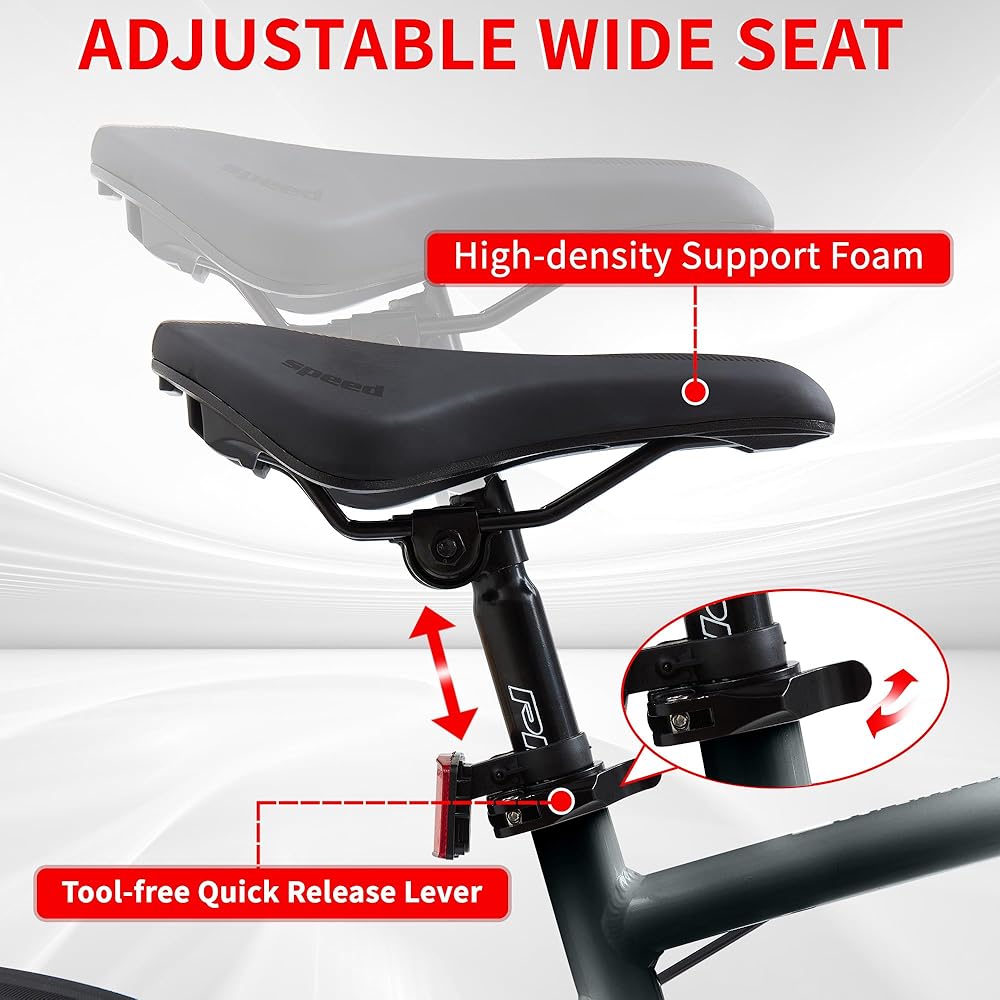 راحة السحابة 9: مقعد يشبه العرش مع إمكانية التعديل بدون أدوات. إسفنج عالي الكثافة يحتضن رحلتك مع إمكانية تعديل المقعد بيد واحدة في منتصف الرحلة. مصممة لتحمل دراجات الطرق للتخلص من الركوب الخدر على دراجات الطرق للبالغين