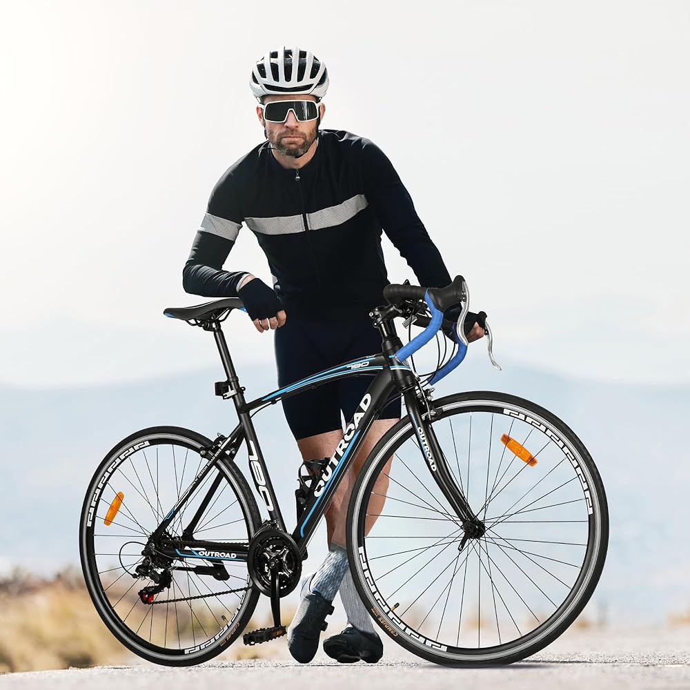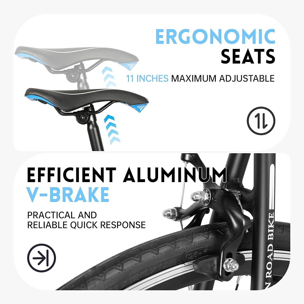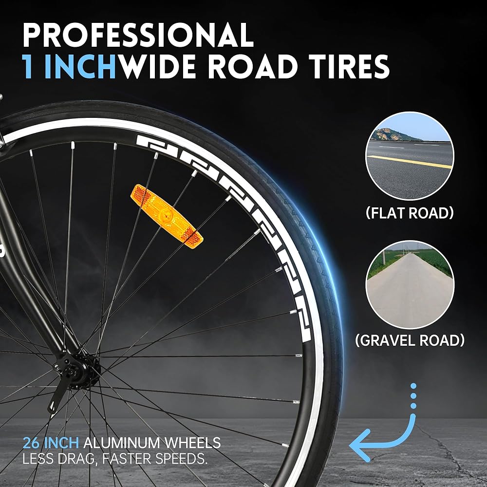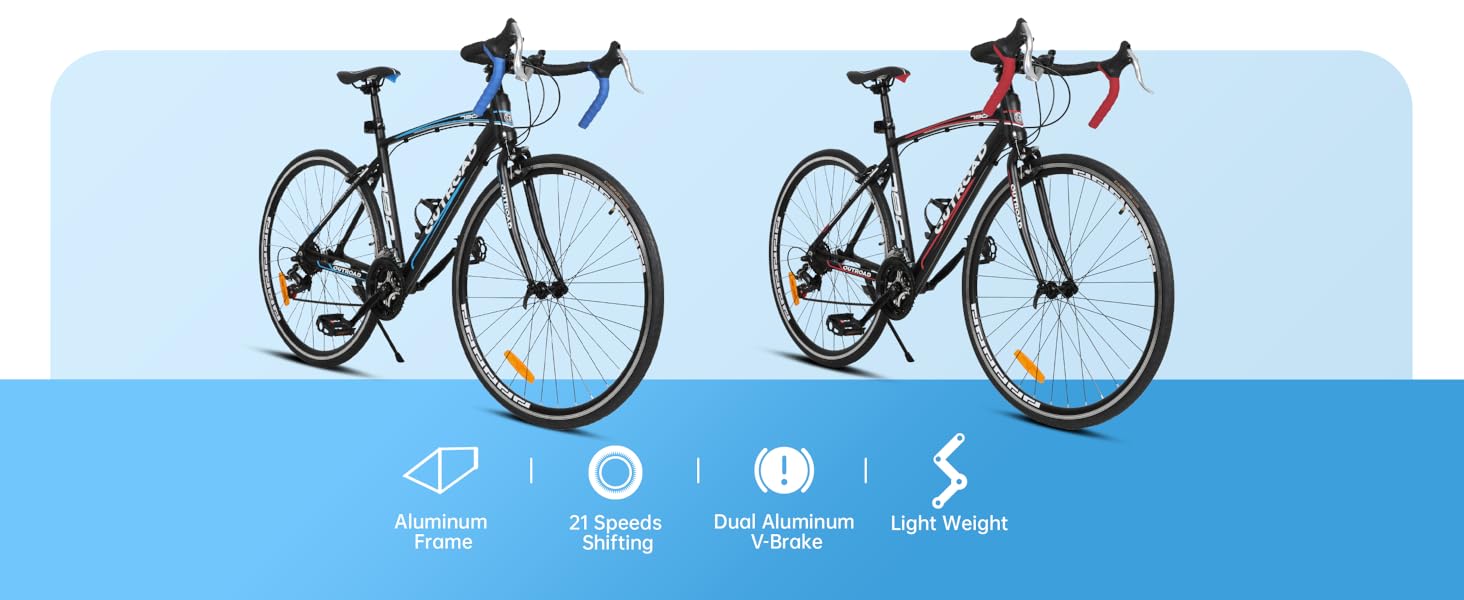 دراجة طريق ذات 21 سرعة مع إطار من سبائك الألومنيوم الخفيفة، دراجة ركاب بعجلة 700C مع فرامل مزدوجة على شكل حرف V، دراجة سباق أسرع 26 بوصة للرجال والنساء، دراجة الترياتلون للبالغين (أزرق)
