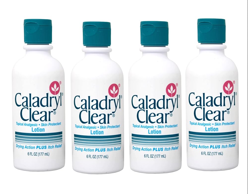 Caladryl Clear Skin Protectant Lotion is formulated to soothe and protect irritated skin. It helps relieve itching, redness, and discomfort caused by minor skin irritations, insect bites, or rashes. The clear, non-greasy lotion absorbs quickly for fast-acting relief. Each bottle contains 6 Ounces (177 mL) of lotion, and this listing includes 4 bottles for a convenient multi-pack. The lotion's gentle formula is suitable for daily use on sensitive skin. Caladryl Clear Skin Protectant Lotion is ideal for adults and children seeking relief from minor skin irritations. Regular use helps calm discomfort while protecting and moisturizing the skin.