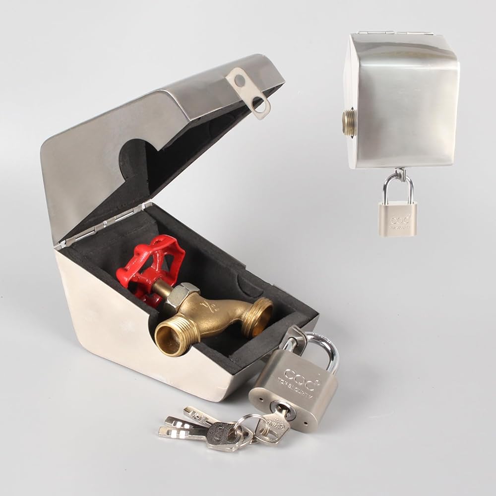 حماية آمنة: يوفر غطاء قفل الصنبور الخارجي هذا أمانًا موثوقًا لحنفيات المياه الخارجية ومرايل الخراطيم ضد الوصول غير المصرح به أو العبث.