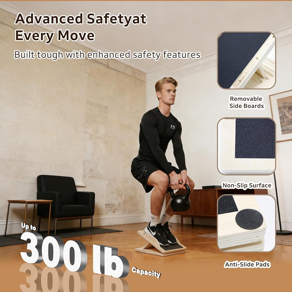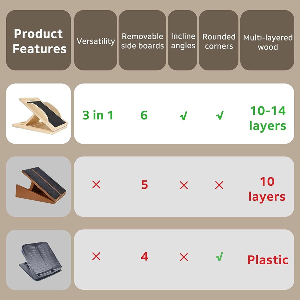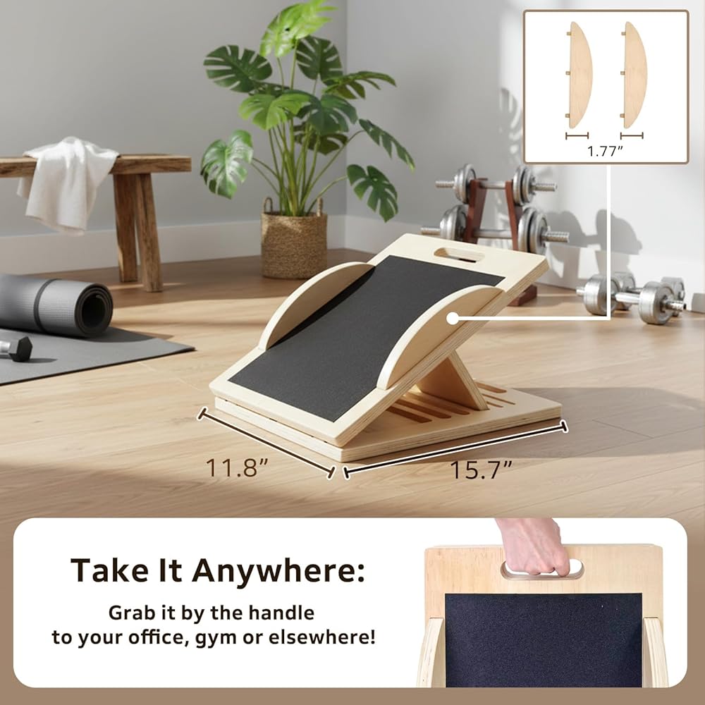 تصميم مطول وموسع: قياس 40.64 سم طولًا × 30.48 سم عرضًا، هذه اللوحة المائلة تناسب معظم البالغين بشكل مريح. تم تصميمه خصيصًا لتمدد الساق والكاحل والوتر بشكل فعال لتقليل الضيق وتحسين راحة العضلات.