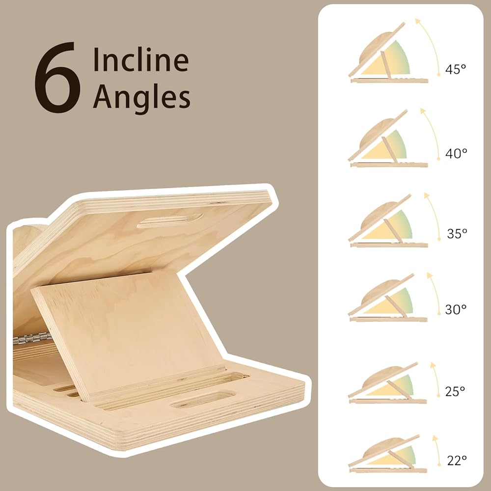 رفيع للغاية وقابل للحمل: مع شكل أنيق مقاس 1.6 بوصة وتصميم قابل للطي، يمكن تخزين هذه اللوحة الخشبية المائلة بسهولة تحت المكتب. يزن 4.8 رطل فقط مع مقبض حمل مريح، وهو الحل الأمثل للتمدد المحمول للمنزل أو المكتب أو السفر.