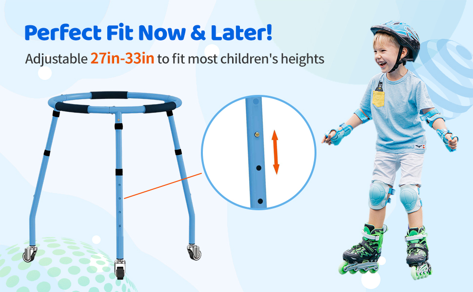 تصميم Grow-With-Me (4 نقرات سهلة!): يتميز بـ 4 أوضاع سهلة النقر لضبطها من 27 بوصة إلى 33 بوصة، مناسبة تمامًا للأطفال الصغار والأطفال الأكبر سنًا. ينمو مدرب واحد مع طفلك عبر سنوات من تنمية المهارات.