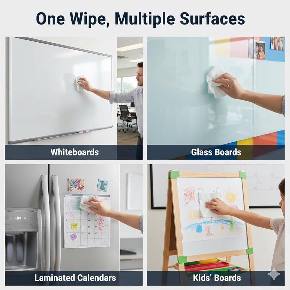 【توافق عالمي】يعمل بفعالية على جميع أنواع اللوحات البيضاء والألواح الزجاجية والأسطح الملساء - لا حاجة إلى منتجات تنظيف متعددة. يجب أن يكون للمعلمين والمهنيين والأسر.