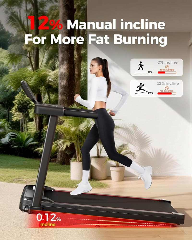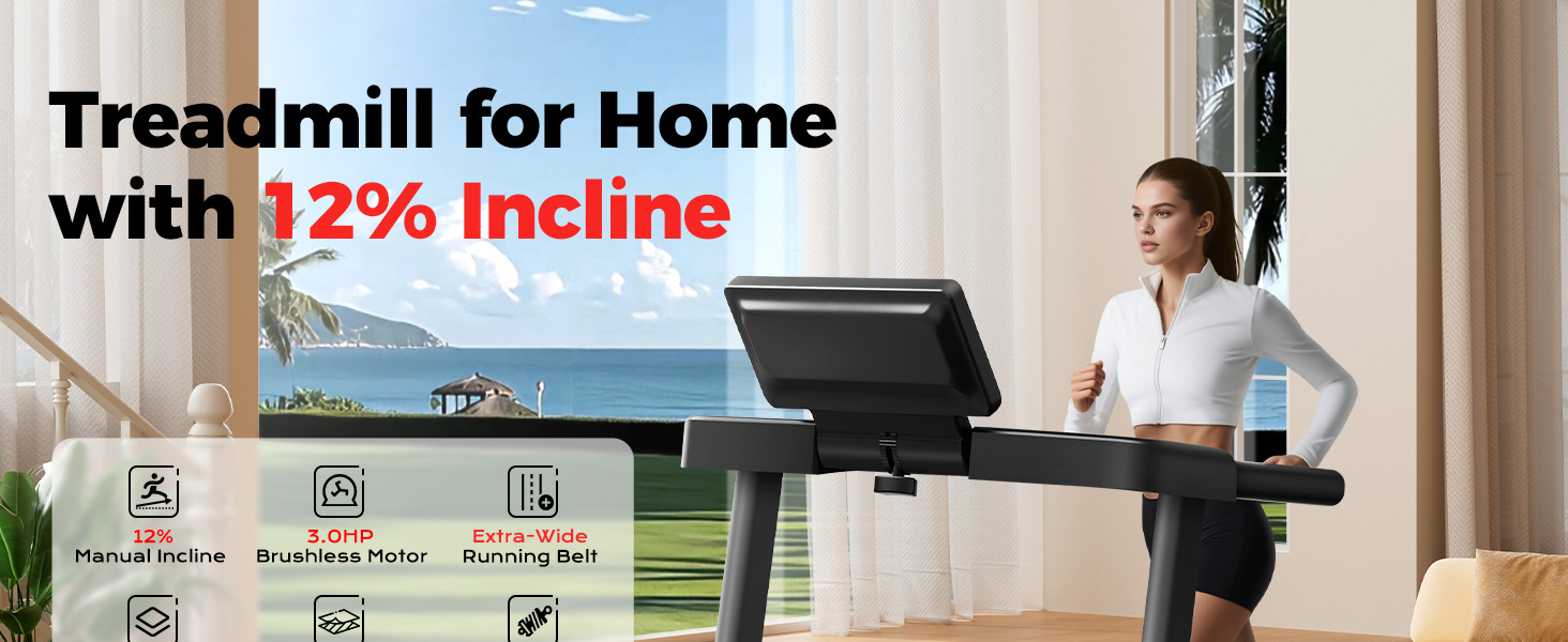 Versatile Home Training Treadmill: The Abonow Treadmill features a 12% incline and 12 customizable programs for flexible workouts, from walking to running. This treadmill with incline system supports your fitness goals with an adaptable home workout experience. These treadmills for home are designed to grow with your daily life and wellness journey