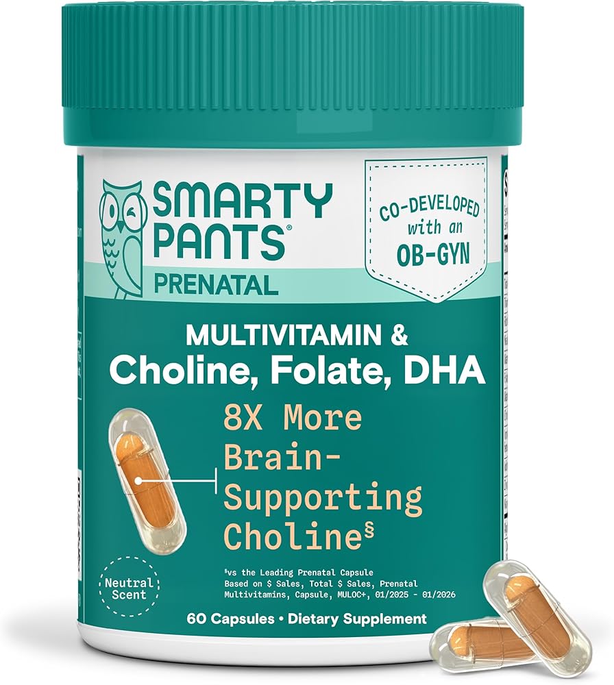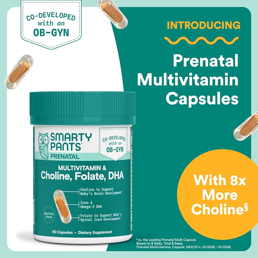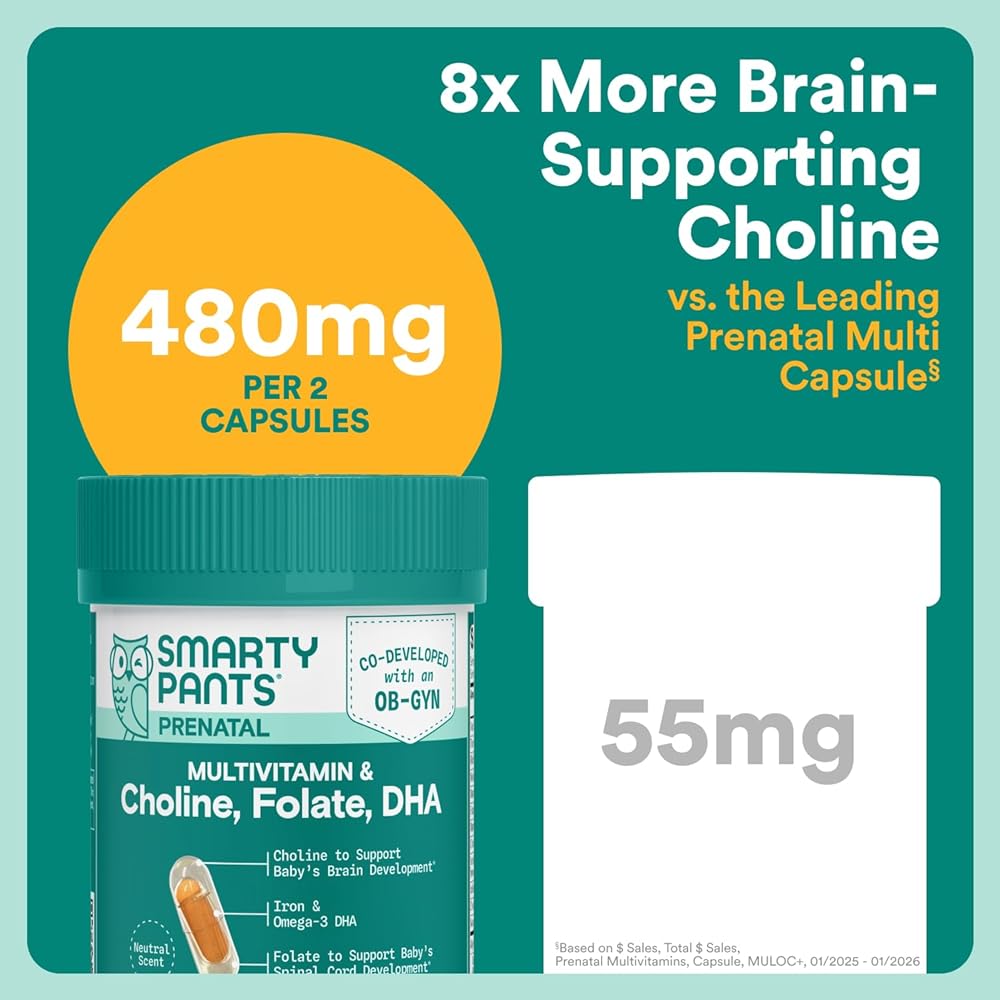 8X MORE CHOLINE THAN THE LEADING PRENATAL CAPSULE§: SmartyPants Prenatal Multivitamin Capsule is scientifically formulated with 480mg of brain-supporting choline for baby's brain and development.*