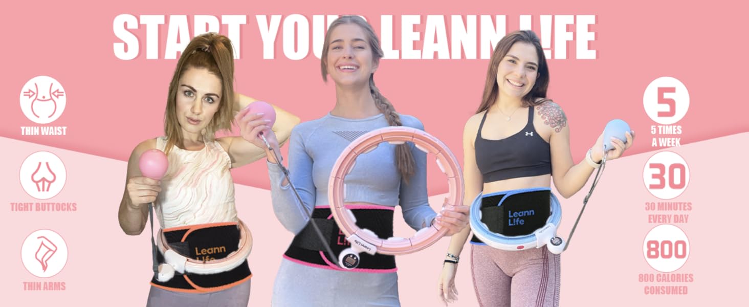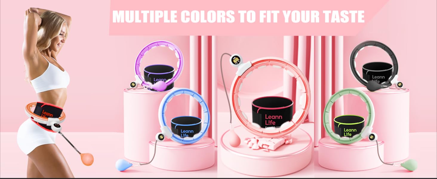 تصميم هادئ ومريح مطور - طوق هولا هولا الأكثر تطورًا من Leann L!fe مع رؤوس تدليك ناعمة لتدليك البطن بزاوية 360 درجة وعجلات ترام مطاطية لتدريبات سلسة وهادئة في المنزل أو أثناء التنقل.
