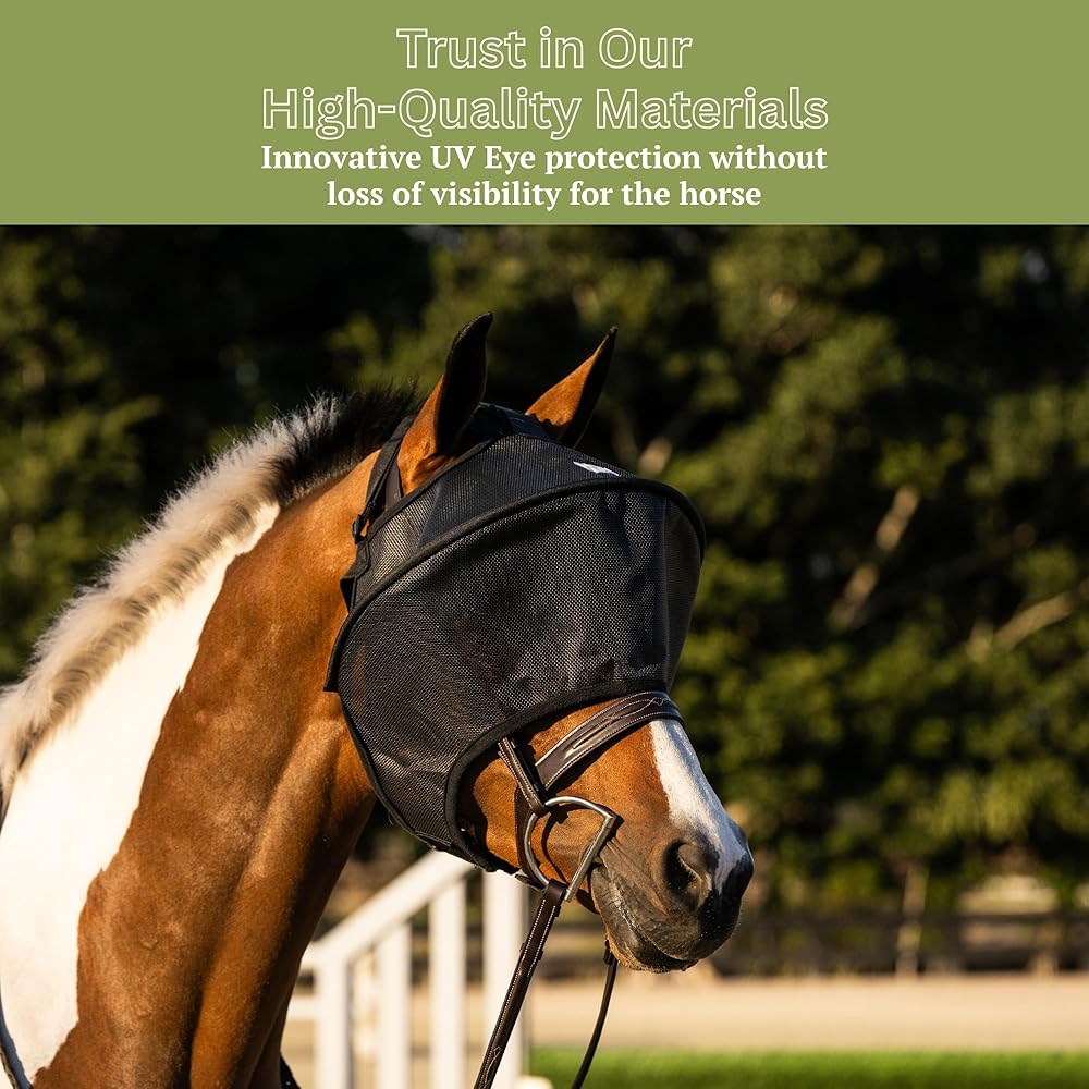 100% UV Eye Protection – Reinforced built-in UV visor helps shield horse eyes from harmful UVA & UVB rays. Ideal horse fly mask visor for bright sun, riding, turnout, recovery, and horses with sensitive eyes.