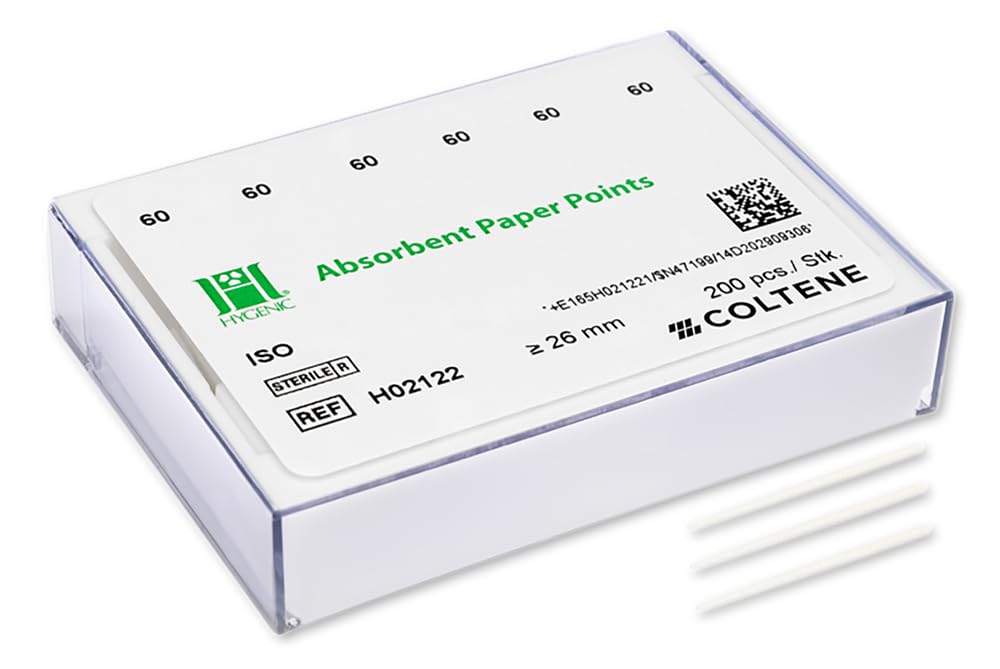 HYGENIC Paper Points White ISO 60, 200 pcs. HYGENIC white paper points allow cleaning and drying of the root canal to be monitored.
