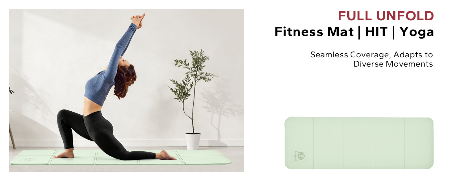 تصميم قابل للطي وموفر للمساحة: يمكن طيه إلى سجادة يوجا قابلة للطي بالحجم الكامل 72 بوصة × 24 بوصة × 0.24 بوصة لتوفير مساحة حركة واسعة - ثم يمكن طيها إلى حجم صغير 15 بوصة × 12 بوصة × 4 بوصة (أصغر بنسبة 70% من السجادات الملفوفة). يمكن وضعها بسهولة في حقيبة الحمل المتضمنة، وتشغل الحد الأدنى من المساحة في حقائب السفر أو حقائب الظهر أو خزانة الملابس.