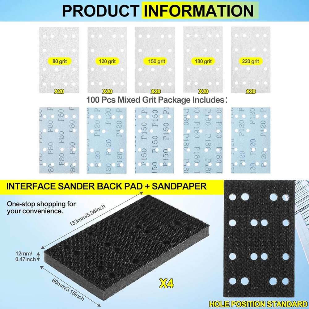 توافق سلس وسهولة الاستخدام: تم تصميمها لتناسب مختلف آلات الصنفرة، حيث تضمن الملاءات مقاس 80 × 133 مم ذات تصميم 14 فتحة عدم وجود منحنى تعليمي، كما أن الظهر والقبضة المريحة تجعل التثبيت سهلاً، مما يسمح لك بالتركيز على تحقيق حواف ومنحنيات دقيقة بسهولة