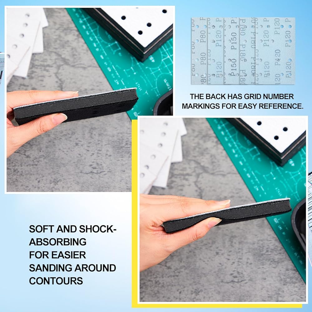 حل الصنفرة الشامل: توفر هذه المجموعة المتكاملة كل ما تحتاجه لمهام الصنفرة الدقيقة؛ مع 100 ورقة صنفرة و4 وسادات سوداء متينة، فهي مناسبة للأعمال الخشبية الدقيقة وإصلاح السيارات وصنفرة المواد متعددة الاستخدامات؛ استمتع بالصنفرة الخالية من المتاعب وبدرجة احترافية في متناول يدك