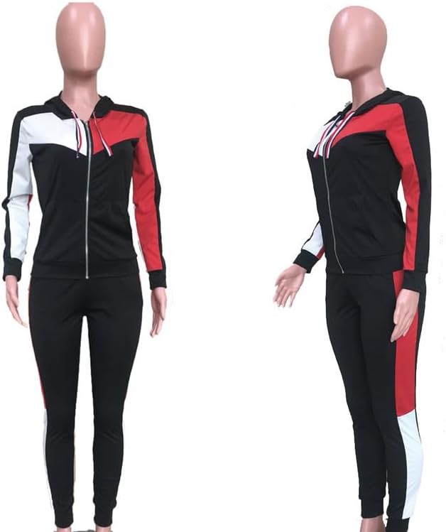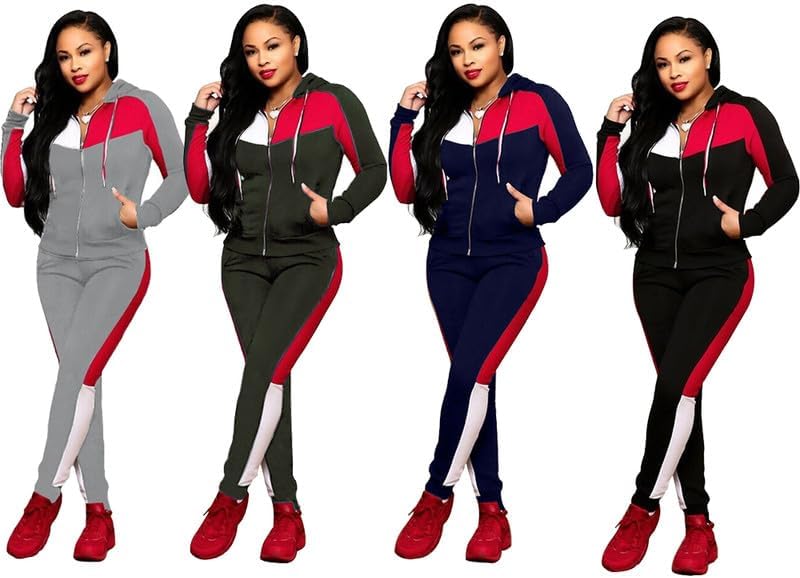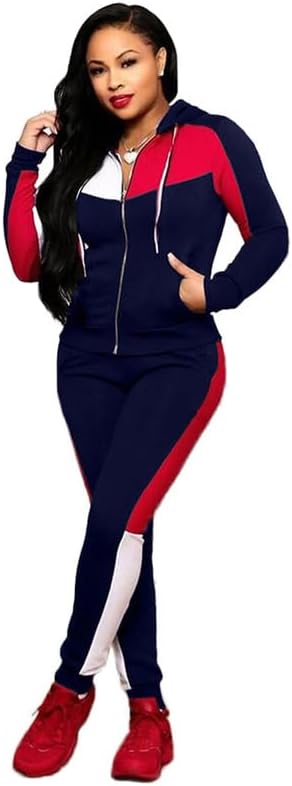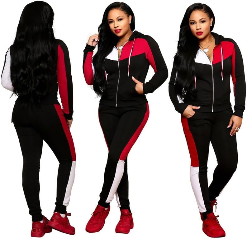 • 【المميزات: بدلات رياضية كاجوال للسيدات، خياطة كتلة الألوان بثلاثة ألوان، خياطة مخططة بأكمام طويلة وسترة رياضية بسحاب كامل وخصر مطاطي مخطط طويل مدبب بدلة رياضية مع جيوب
