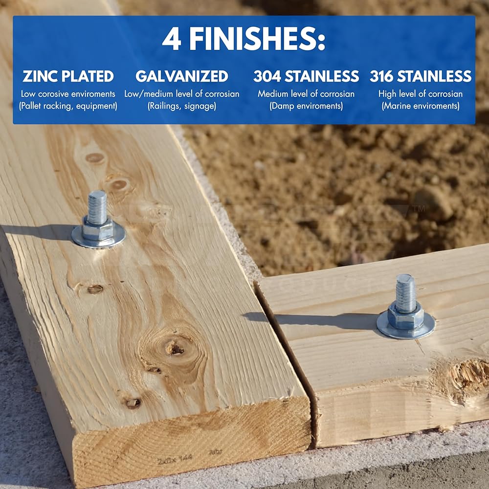 WHY CHOOSE 304 STAINLESS – Zinc-plated carbon steel anchors are commonly used in dry, indoor conditions; 304 stainless steel is often selected for outdoor, damp, or exposed environments where added corrosion resistance is preferred.