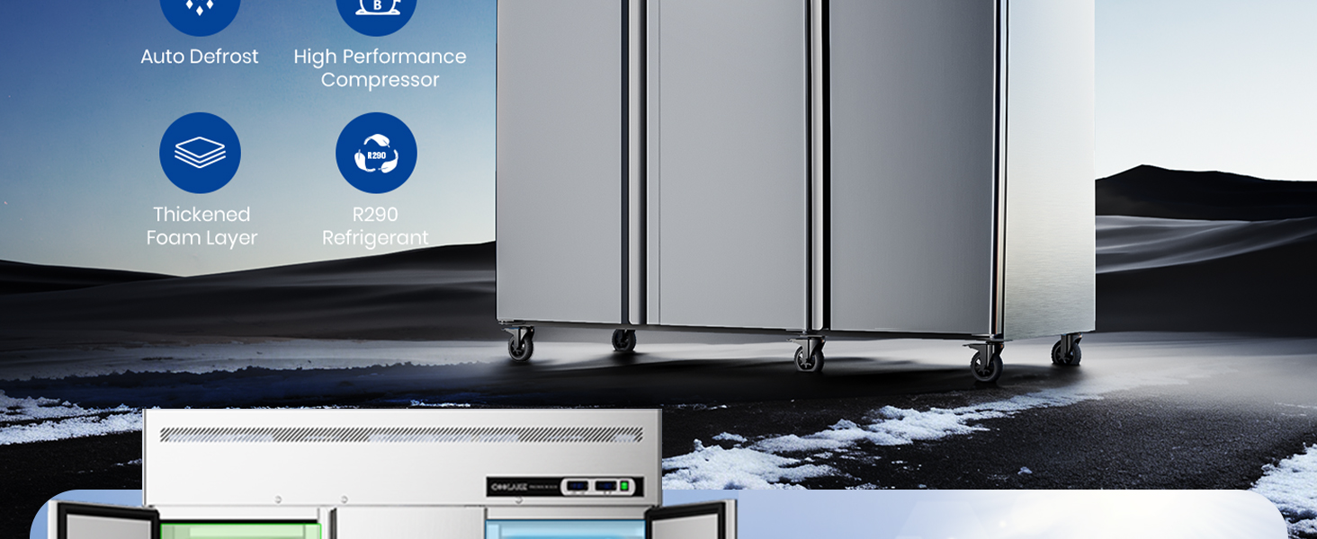 هيكل متين من الفولاذ المقاوم للصدأ: مصنوع من الفولاذ المقاوم للصدأ عالي الجودة، والجزء الداخلي والخارجي لمجموعة ثلاجة الفريزر يقاوم الصدأ والتآكل والخدوش والبقع، ويتعامل مع الاستخدام اليومي الثقيل بسهولة. كما يمكن تنظيف سطحه المصنوع من الفولاذ المقاوم للصدأ بسهولة بقطعة قماش مبللة فقط، مما يقلل وقت الصيانة ويحافظ على مساحة التخزين نظيفة.