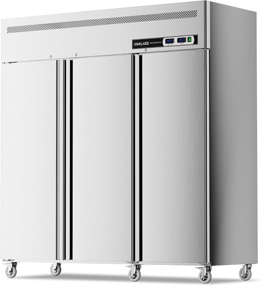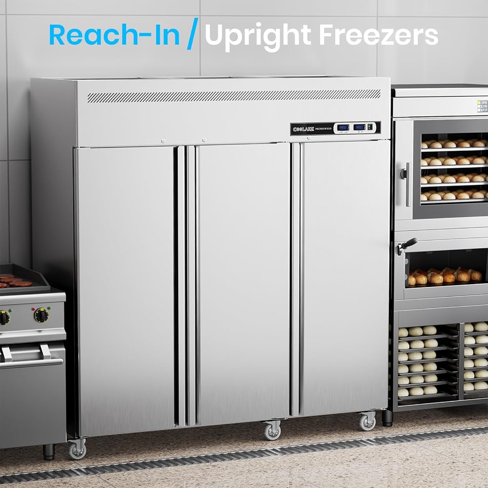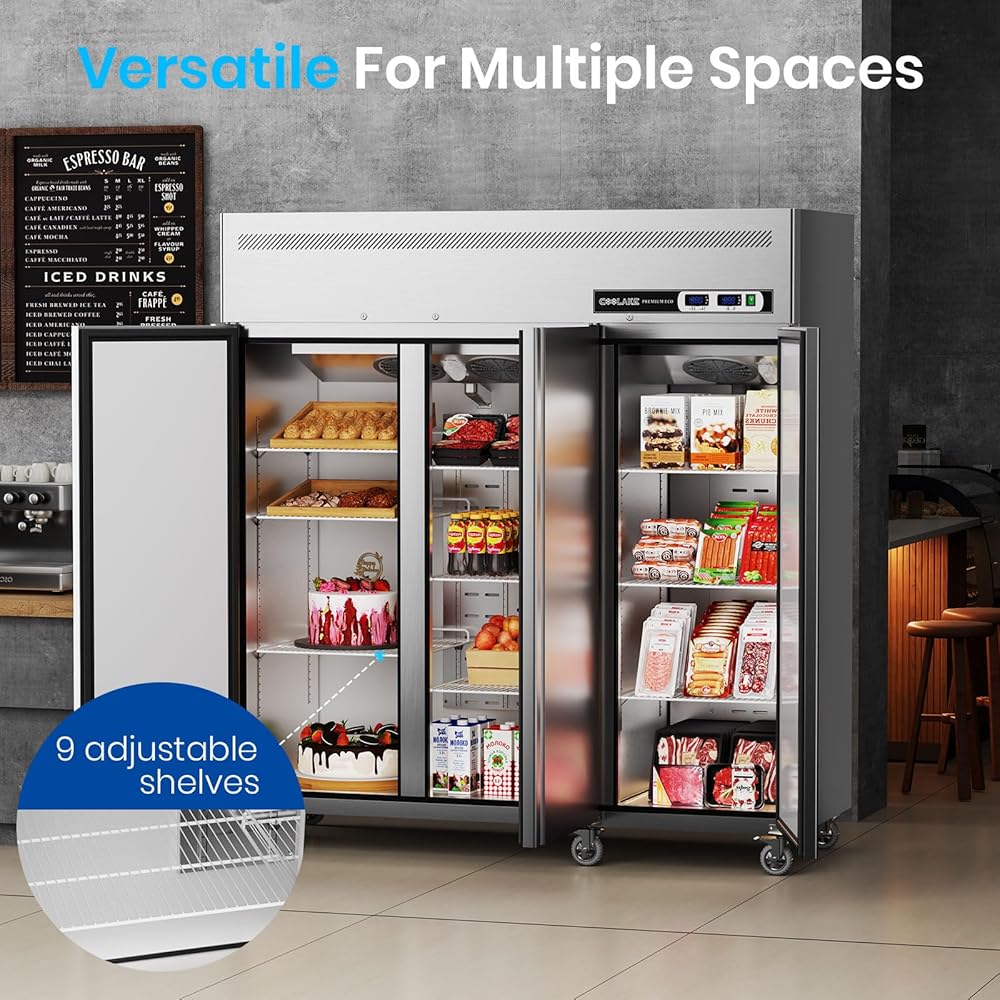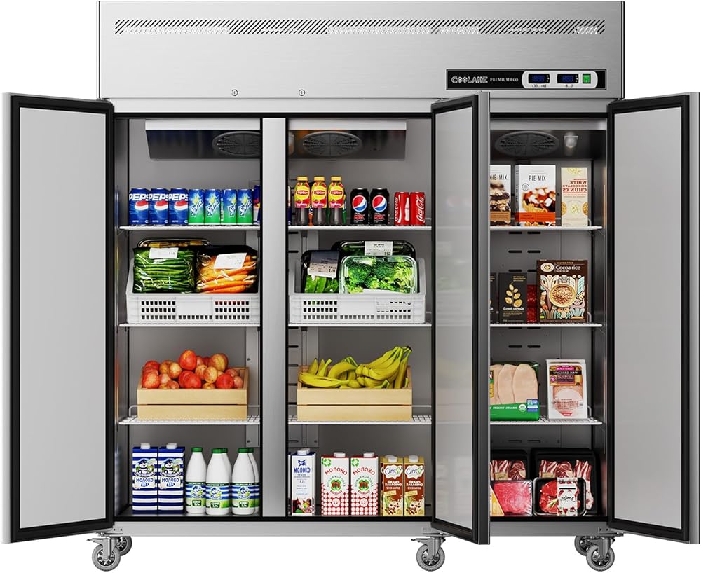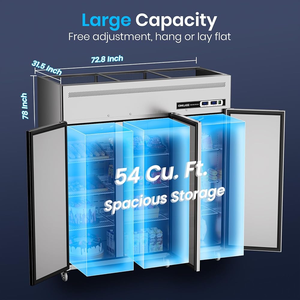 مجموعة ثلاجة بفريزر عمودي تجاري من Coolake، 72 بوصة ث مناطق درجة حرارة مزدوجة، 54 قدم مكعب من الفولاذ المقاوم للصدأ، 3 أبواب تصل إلى الفريزر لمطعم البار والمتجر والمطبخ والكنيسة المدرسية