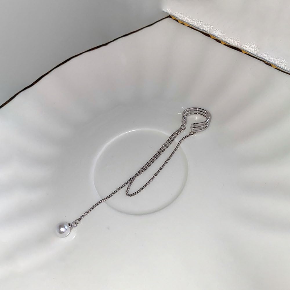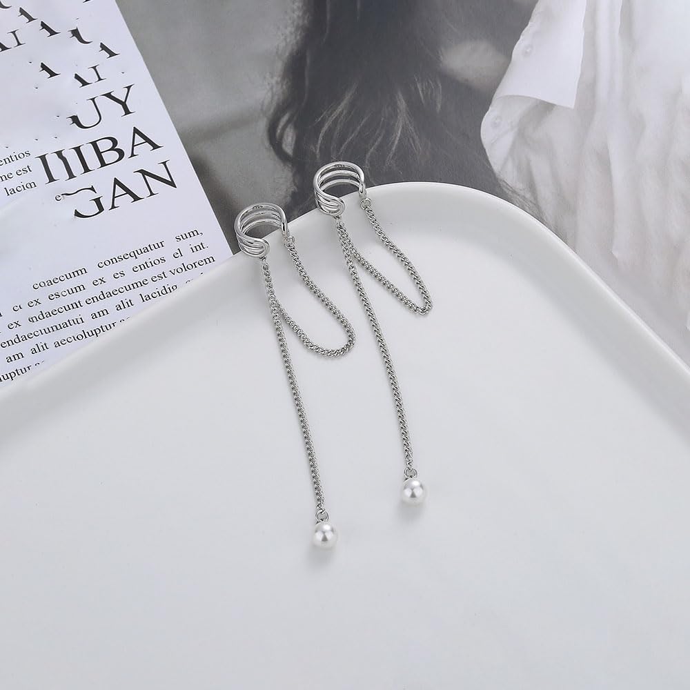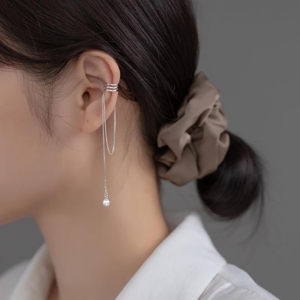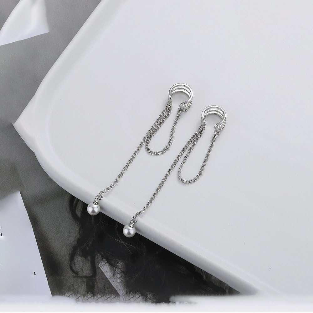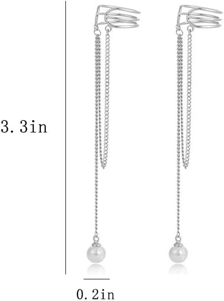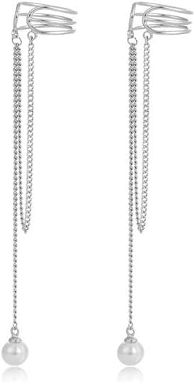 شرابة سلسلة اللؤلؤ الأذن كليب لا ثقب الكفة الأقراط سلسلة للنساء في سن المراهقة الفتيات الغضروف التفاف الأقراط شرابة سلسلة كليب على الأذن لا ثقب