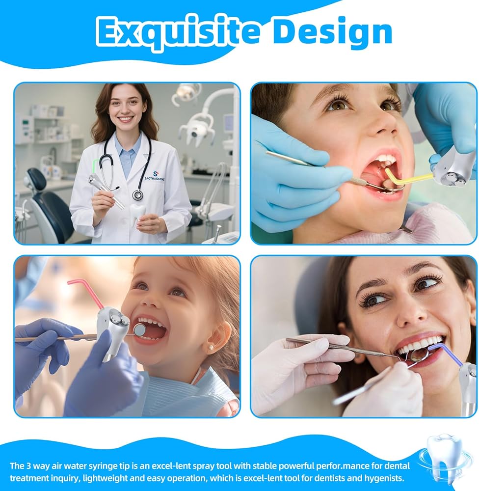 • 【Precision Oral Irrigation for Dental Procedures】 Designed exclusively for standard dental air water syringes. These tips deliver a controlled stream of air, water, or mist for critical procedures such as subgingival irrigation, cavity rinsing during restoration, and clearing the operative field, enhancing procedural efficiency and patient comfort.