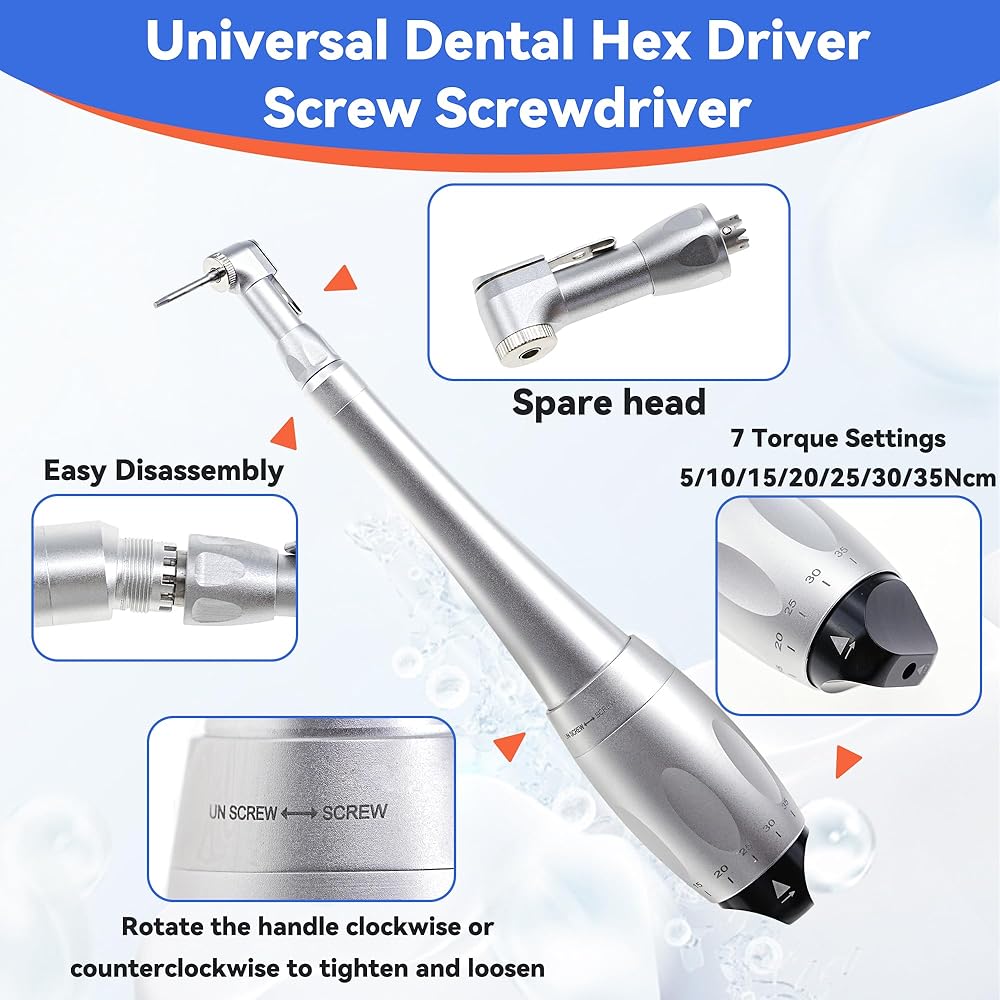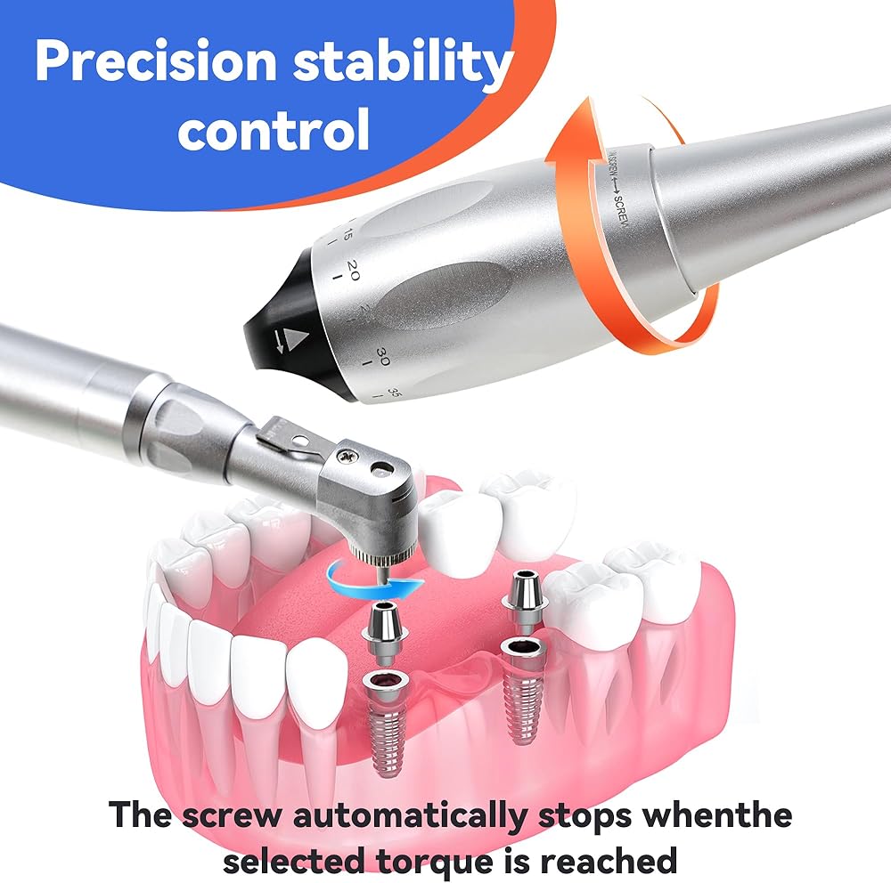 【Precision Torque Control (5-35 N/cm)】: With 7 torque value settings, it can meet different torque requirements.. Pre-tension mechanics ensure exact force delivery for safer implant procedures.
