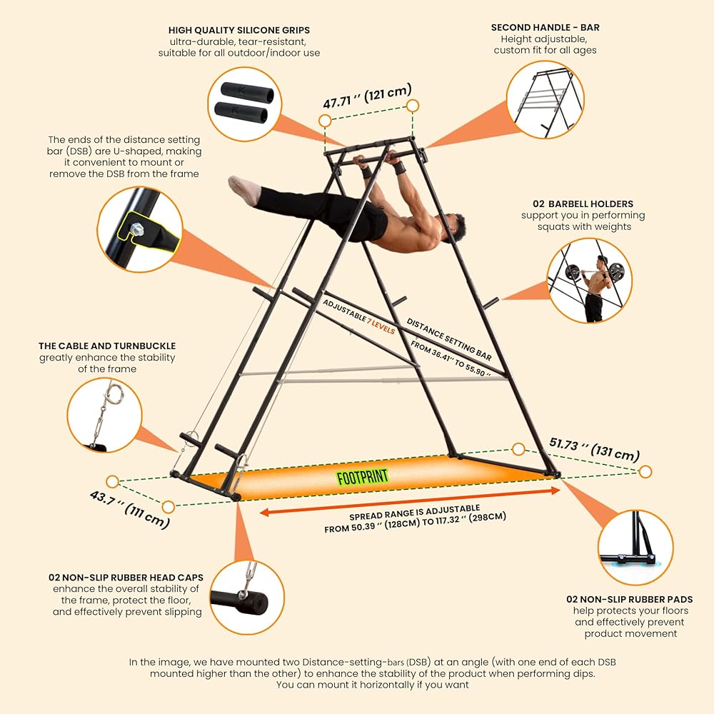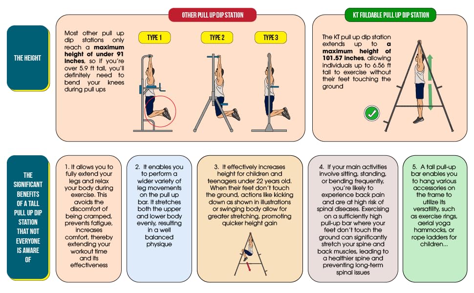 [آمن ومتعدد الاستخدامات للعائلة بأكملها] على عكس أبراج الطاقة الأخرى المحصورة بمساحات ضيقة، يوفر جهاز الدفع KT Chinup Dip Pushup مساحة واسعة، مما يضمن سلامة السحب دون التعرض لخطر الاصطدام بالإطار. يستوعب المقود مقاس 39.37 بوصة المستخدمين من جميع الأحجام بمقابض واسعة وضيقة للتمرينات المتنوعة. تم تصميمه ببراعة لدعم الملحقات مثل أراجيح اليوغا الهوائية وحلقات الجمباز وأشرطة المقاومة وأشرطة TRX، وهو يعزز أسلوب حياة نشط وصحي لجميع أفراد الأسرة