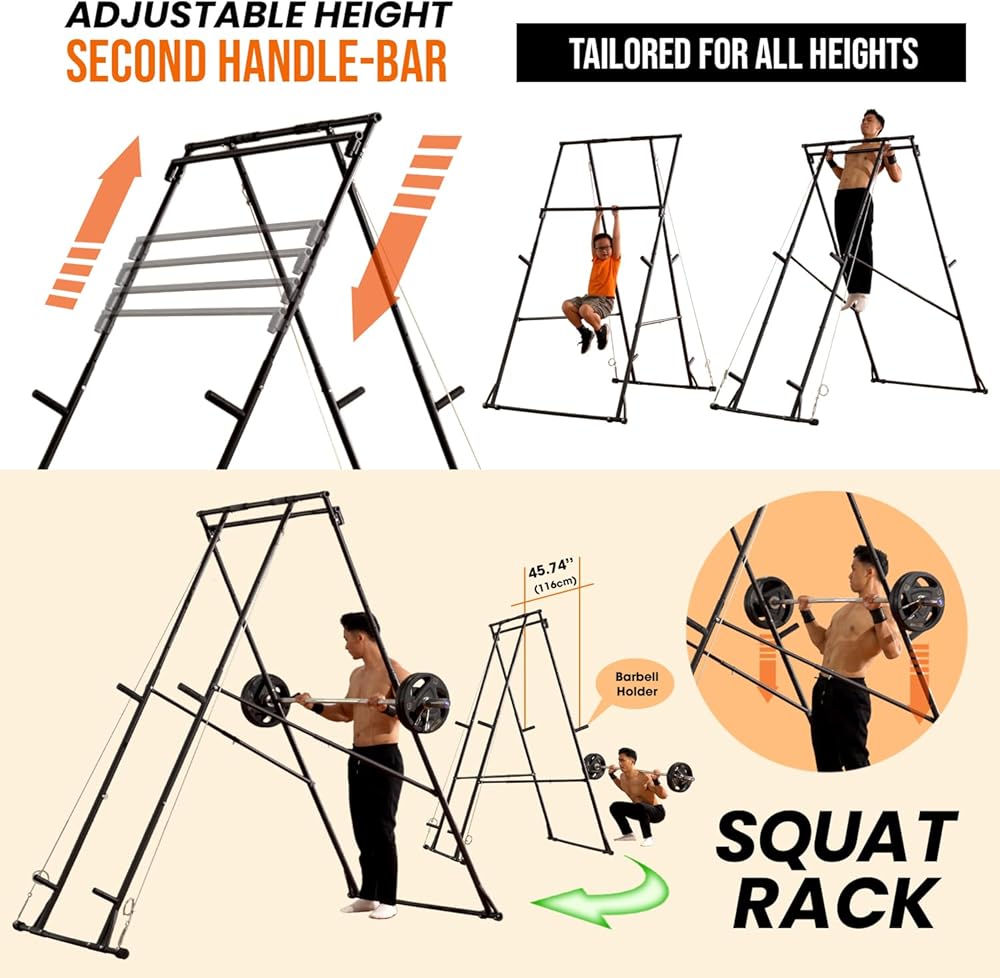 [حل تمرين موفر للمساحة] يوفر رف القرفصاء متعدد الوظائف من KT أكثر من مجرد تصميم مدمج؛ إنها محطة لياقة بدنية قابلة للتعديل بالكامل وقابلة للطي بسرعة لتناسب المساحة الخاصة بك واحتياجات التمرين. قم بطيها في 10 ثوانٍ فقط ثم قم بإزالتها بسهولة؛ وهذا يجعله حلاً مثاليًا ومتعدد الاستخدامات للمساحات الصغيرة أو الشقة أو غرفة النوم أو الفناء الخلفي أو المرآب أو صالات الألعاب الرياضية المنزلية أو أي منطقة للتمرين