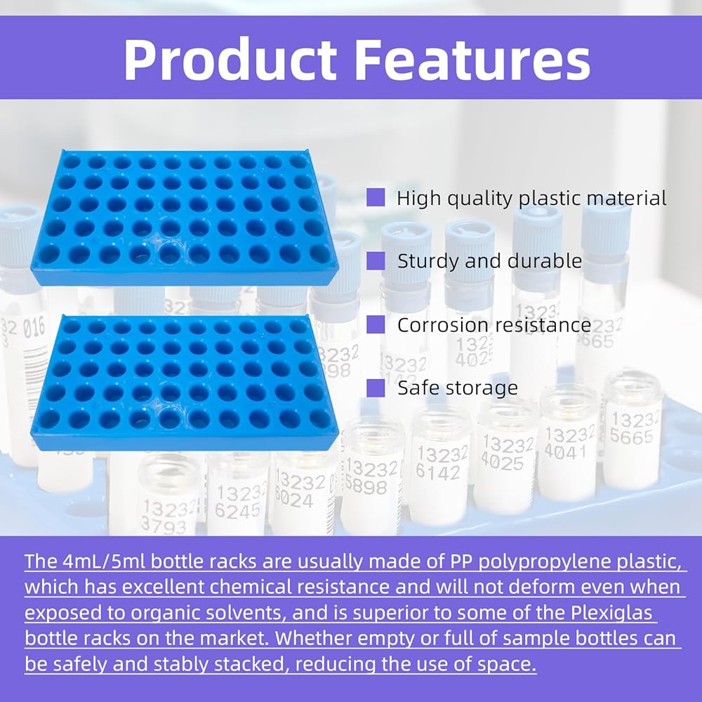 Dual-Size Efficiency: The 4ml/5ml racks securely hold standard HPLC bottles for LC/MS or UPLC workflows,